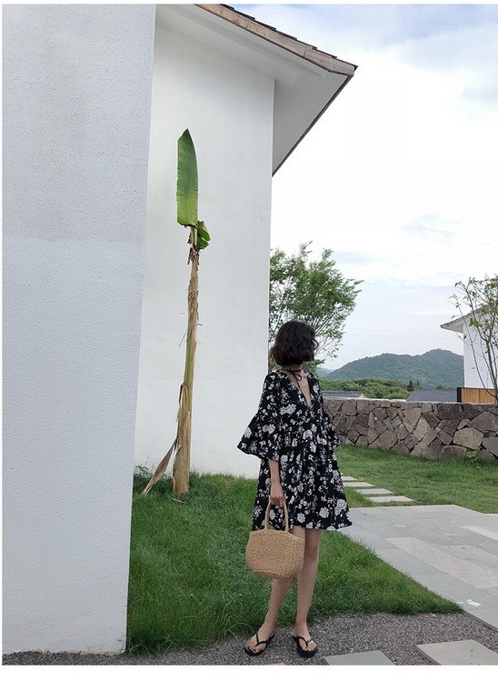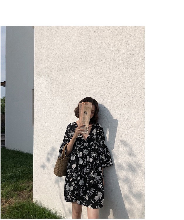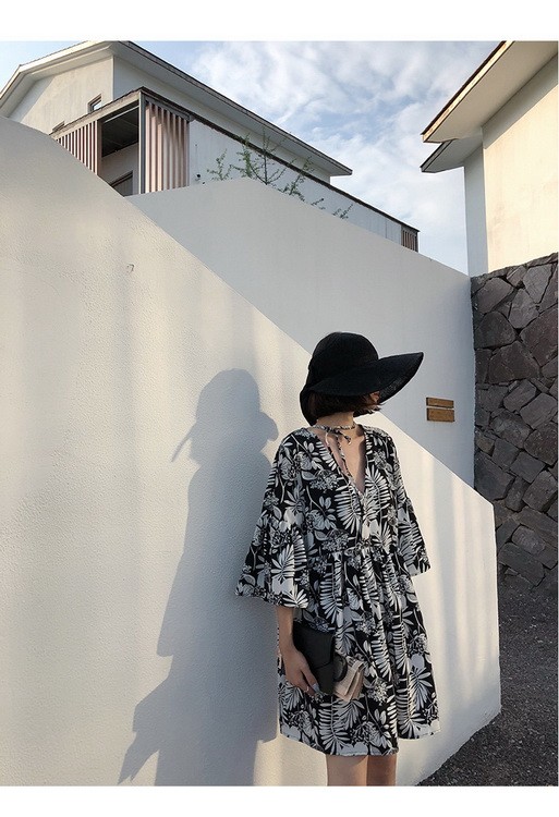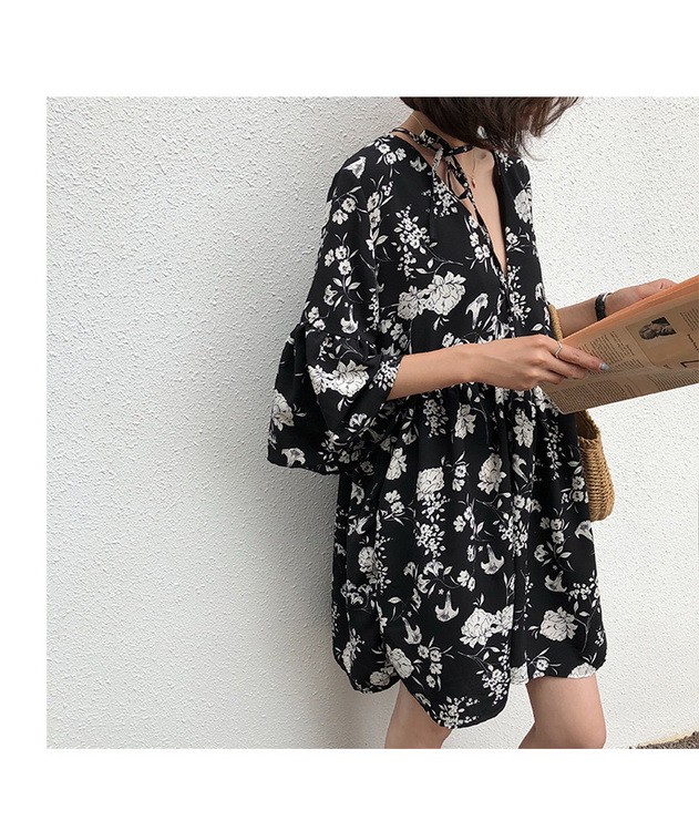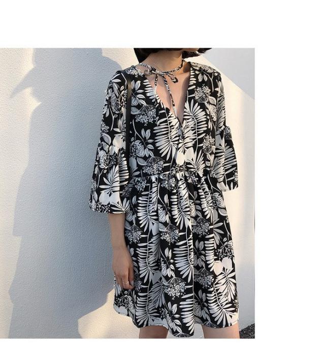 ワンピース レディース 40代 春夏 きれいめ ショート丈ワンピース 五分袖 花柄ワンピース aライン Vネック 大きいサイズ オ 韓国風 ゆったり オシャレ 着痩せ