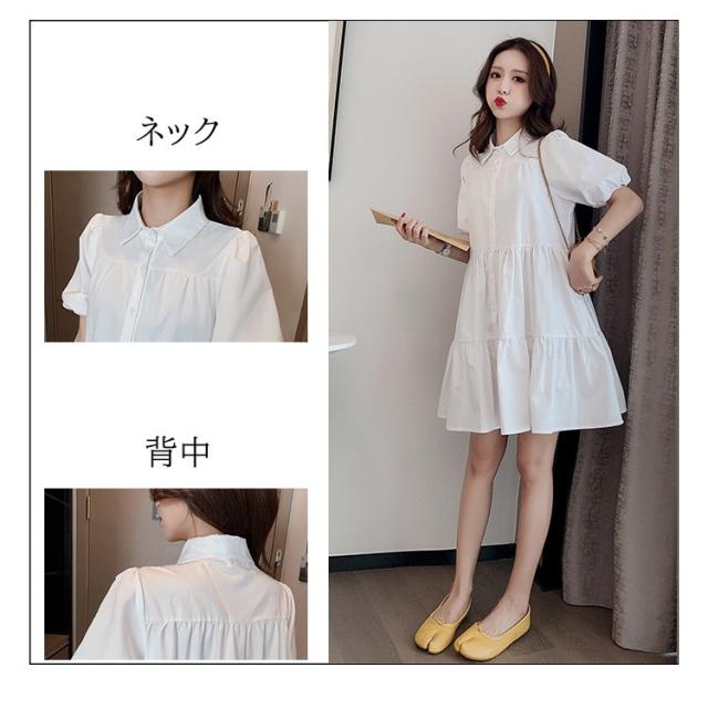 シャツワンピース レディース 40代 キレイめ 膝丈ワンピース 夏 半袖ワンピース シャツ白チュニック Aラインスカート オシャレ大人可愛い 大きいサイズ