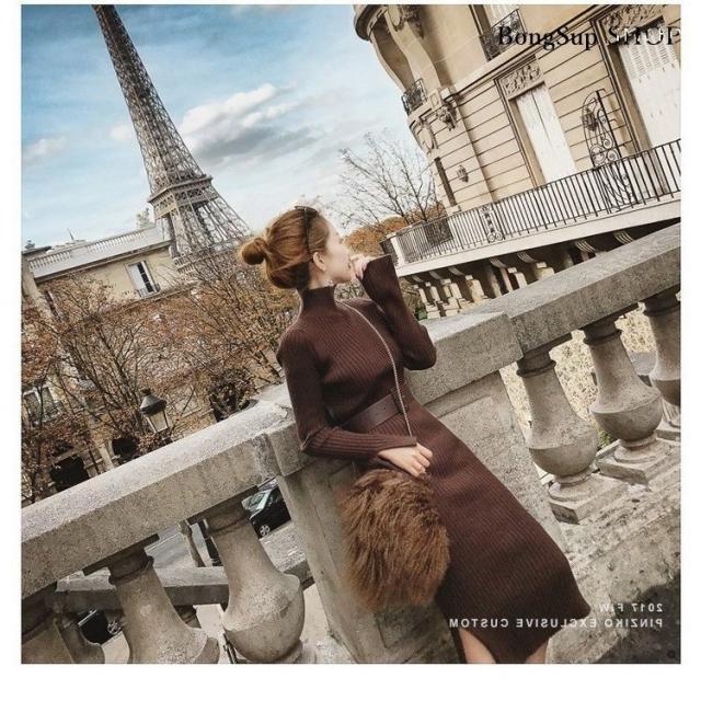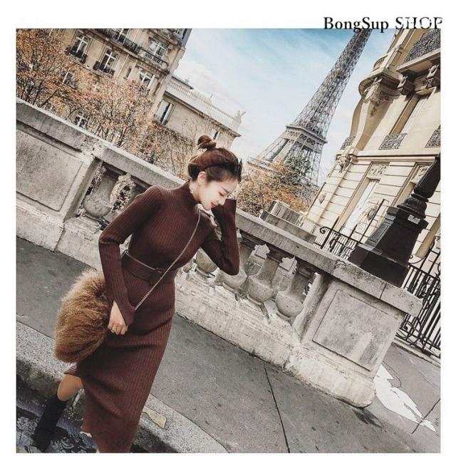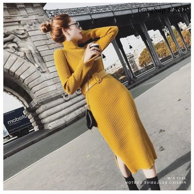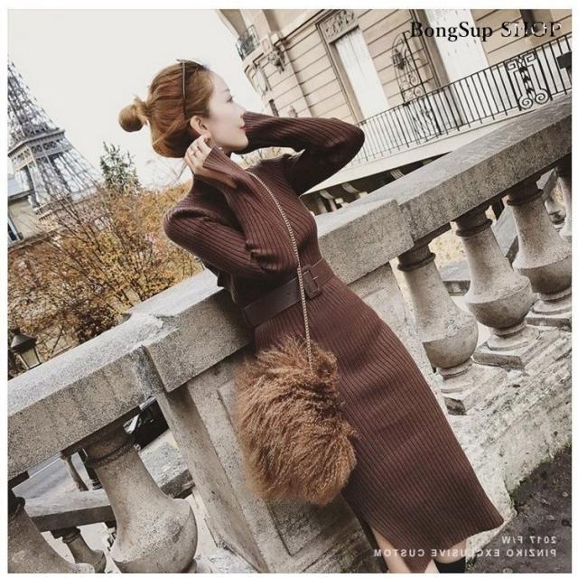 ニットワンピース レディース ロング丈ワンピース 無地 長袖 冬 秋冬 きれいめ