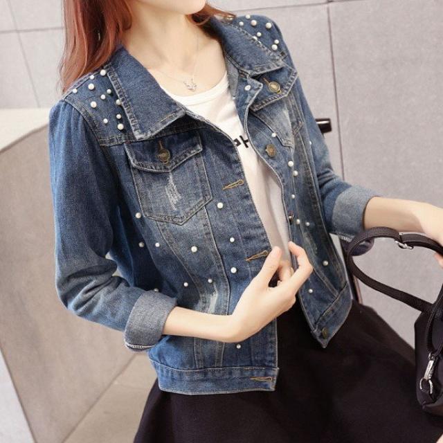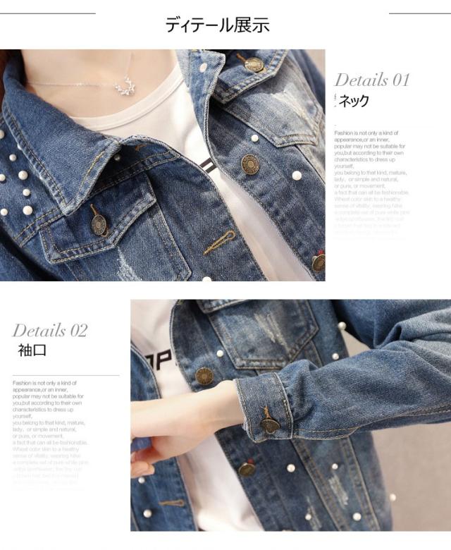 デニムジャケット レディース 秋新作 デニムジャケット 大きいサイズ ピーコート 長袖 gジャン 韓国風 ビーズ ショート丈 デニム コート アウター オシャレ 新作