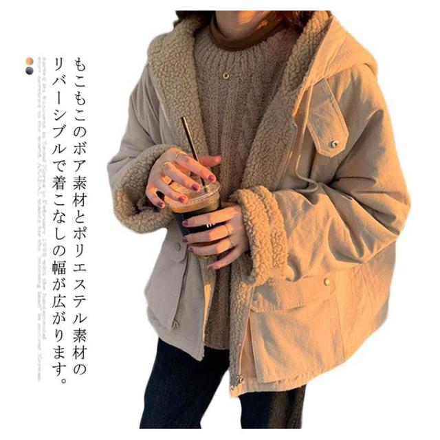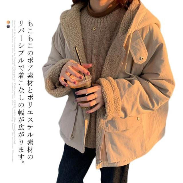 コート ボアブルゾン レディース ボア アウター フード リバーシブル ショートブルゾン 両面着コート 裏起毛 中綿コート モッズコート 両面起毛 ボアジャケット アウター ボア
