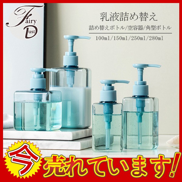 【セール中】詰め替えボトル 空ボトル シャンプー ソープディスペンサー 乳液 ハンドソープ 押し式 容器 便利 おしゃれ 化粧品 洗剤 角型ボトル 殺菌