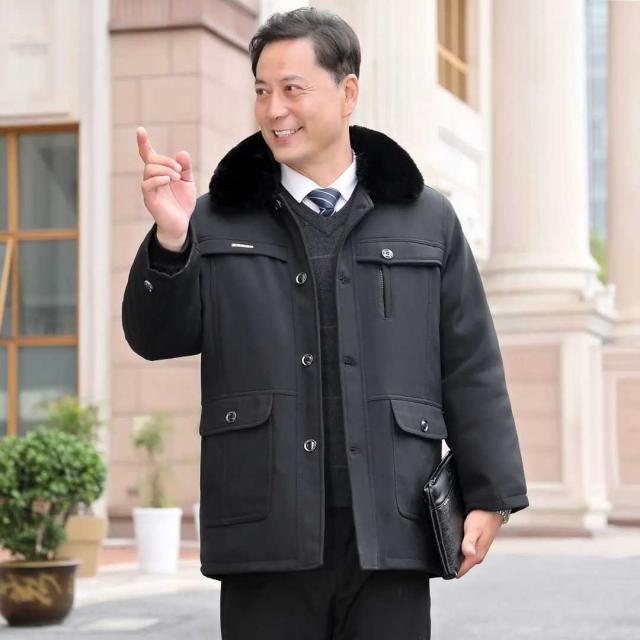 綿服 コート メンズ トップス ジャケット アウター 毛皮の襟付き 折り襟 着脱式インナーライナー 裏起毛 防寒 暖かい あったか カジュアル 厚手 保温 冬服 お父さん おじいちゃん 父の日 贈り物