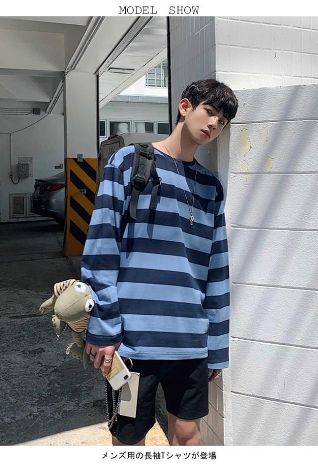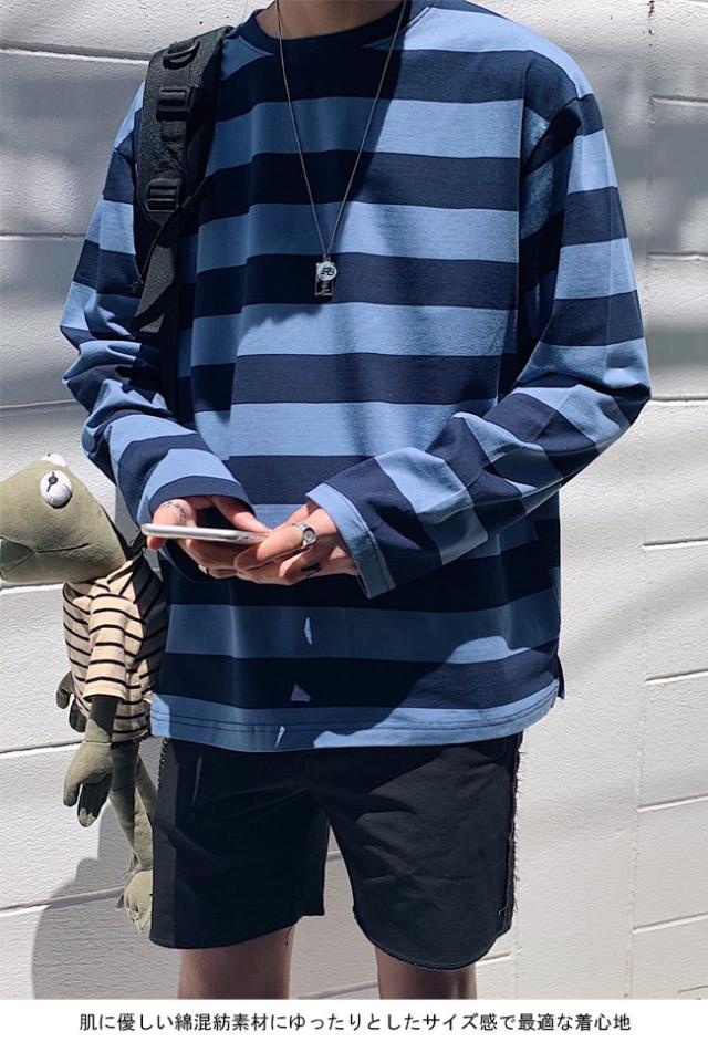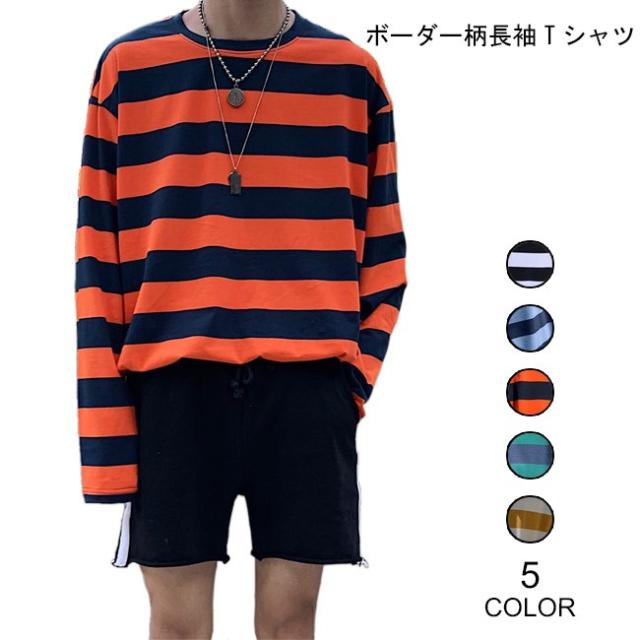 長袖Tシャツ ボーダー柄 メンズ Tシャツ ゆったり カットソー 男性 ボーダー柄Tシャツ 長袖 カジュアル 爽やか トップス 春秋