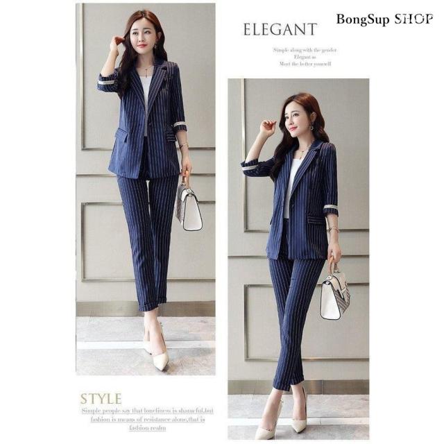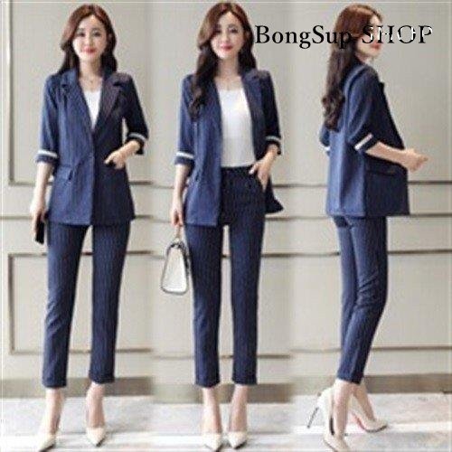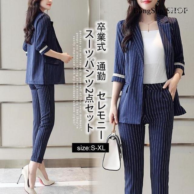 スーツ セットアップ レデース 韓国 春 スーツパンツ テーラードジャケット 2点セット ストライプ セレモニー 通勤 OL 入学式 お洒落 着痩せ 上品 30代 40代