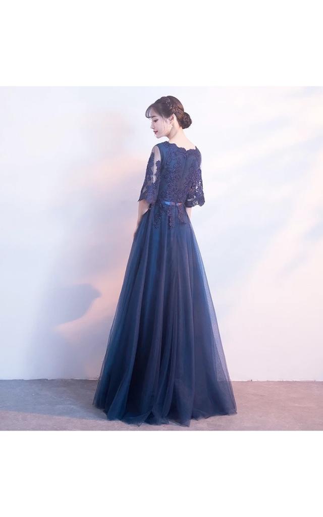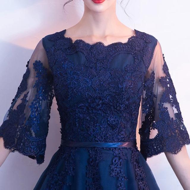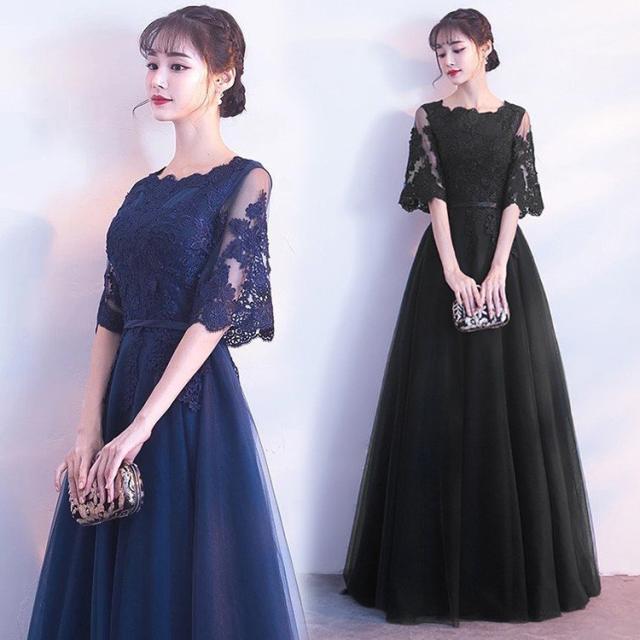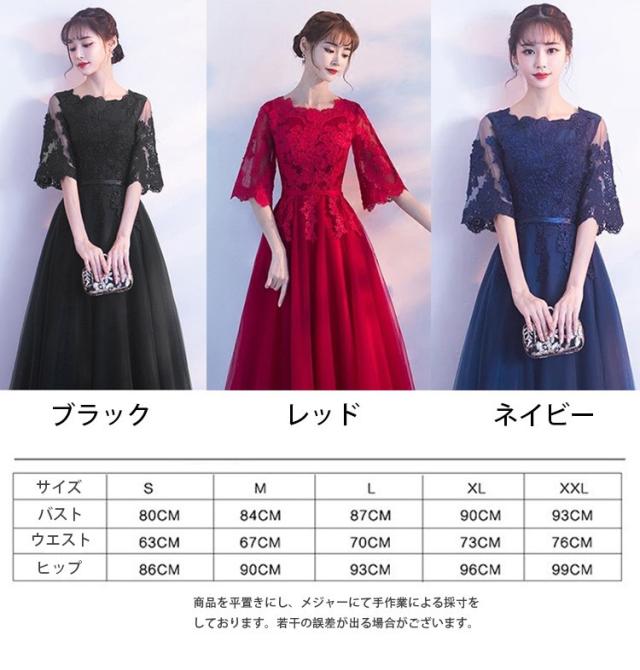 レディース ロングドレス 五分袖 レース チュール ワンピース 無地 プリンセスドレス 花嫁の介添えドレス 結婚式 二次会 パーティー 演奏会 発表会 披露宴