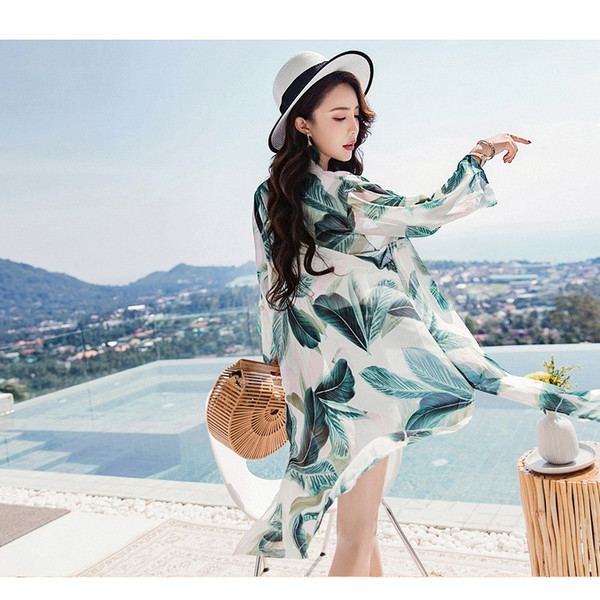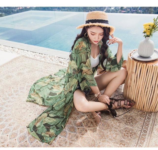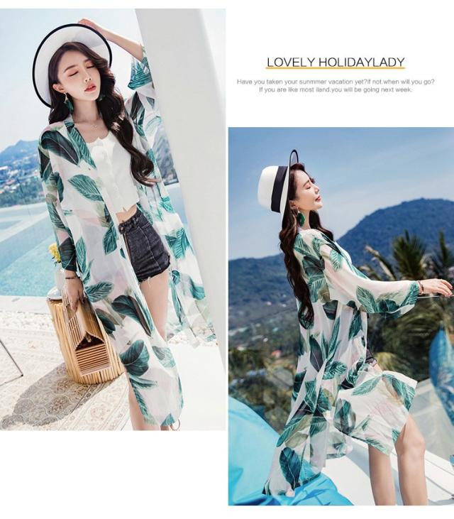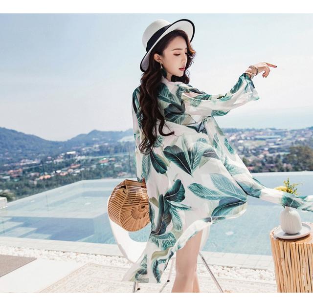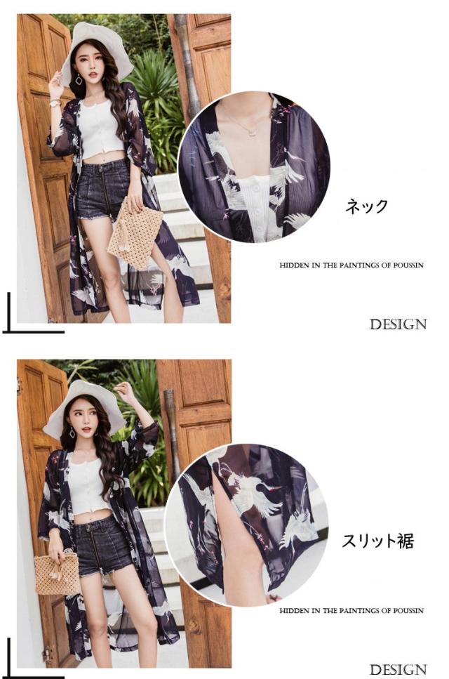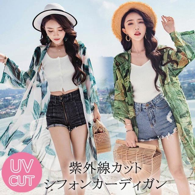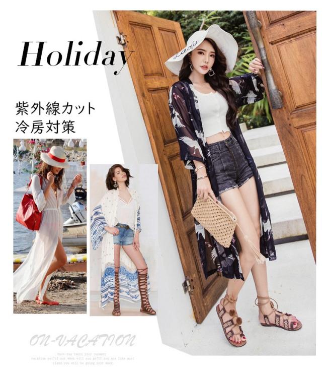 uvカットカーディガン レディース 春夏 長袖ガウン 薄手 花柄 シフォンカーディガン ロング丈 紫外線カット シースルー 冷房対策 ビーチウェアフェミニン