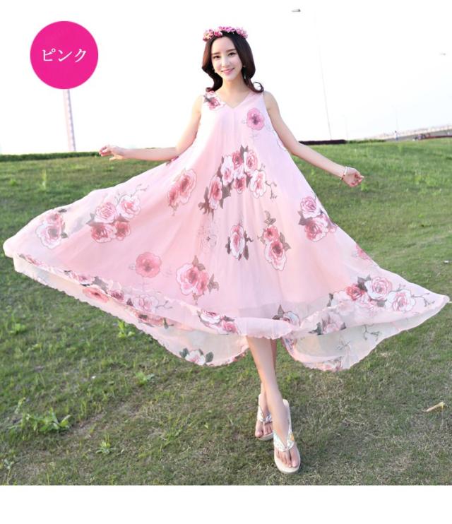 マキシワンピース 春夏 大人可愛い 花柄 ワンピース マキシ Aライン キャミマキシ リゾートワンピース マキシ丈 シフォン オフショルダー リゾートワンピ