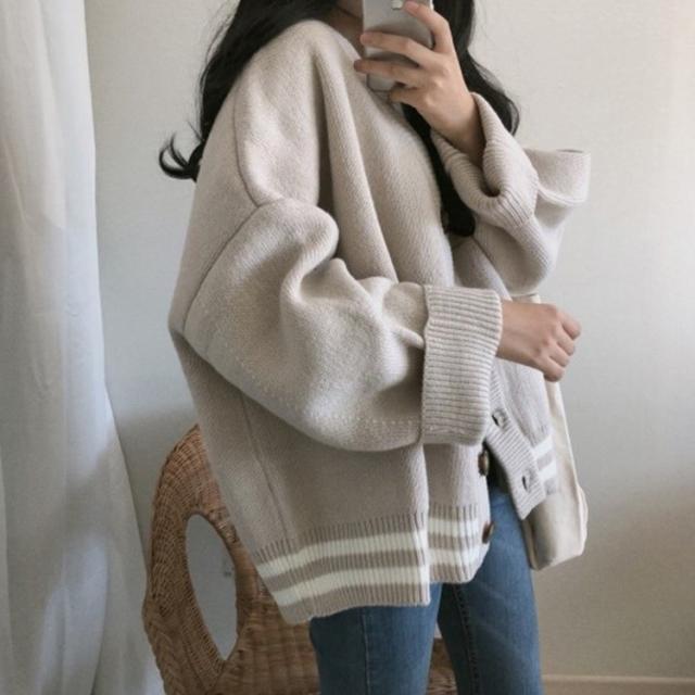 セーター ニット レディース トップス 秋冬 ニットカーディガン 開襟ニット オシャレ きれいめ 開襟セーター カジュアルウエア 大きいサイズ 学院風 2色