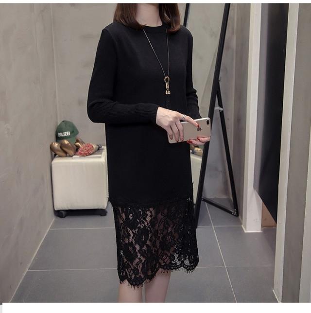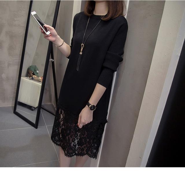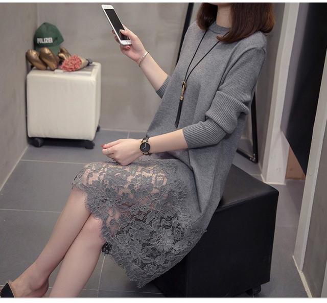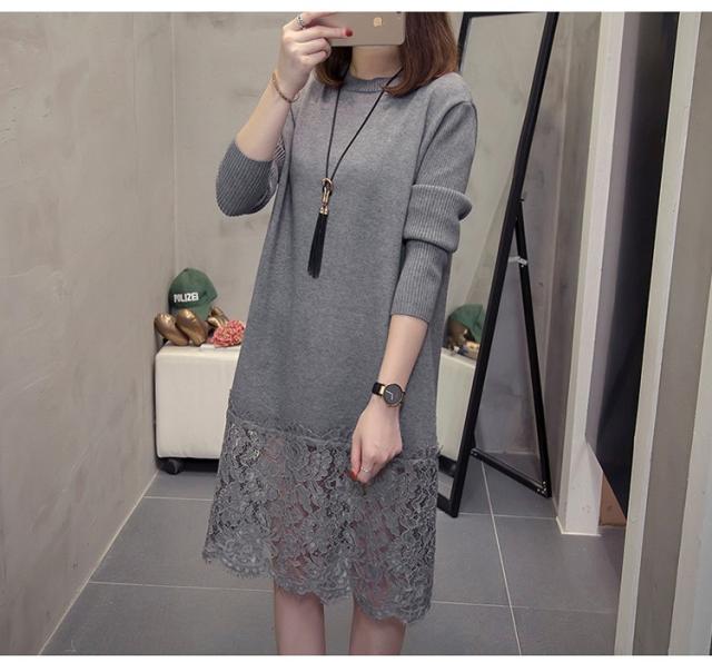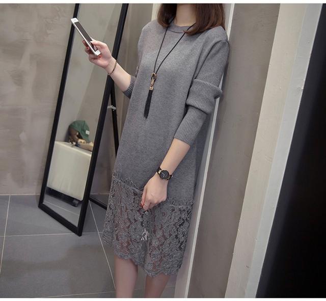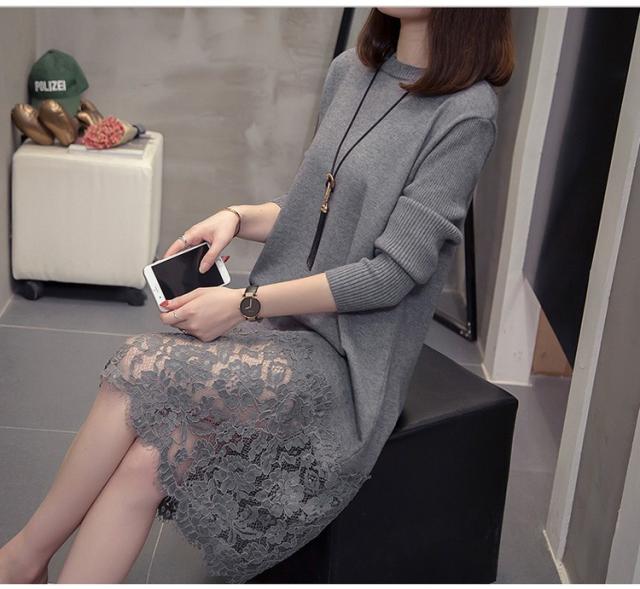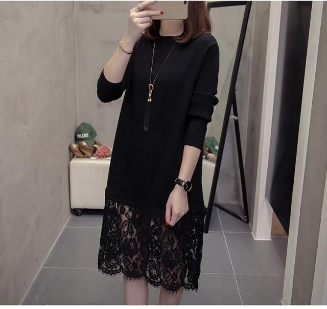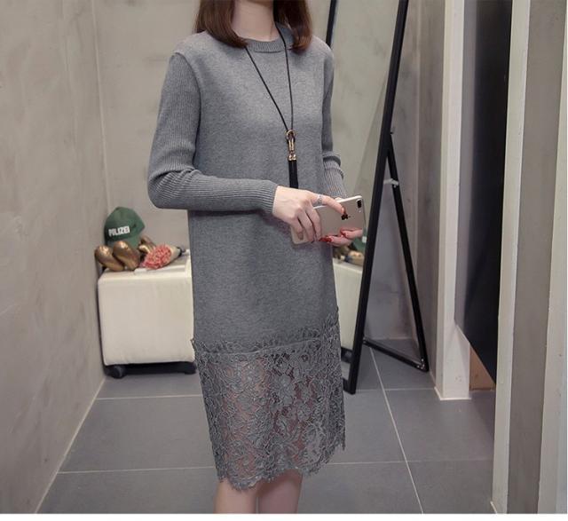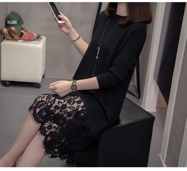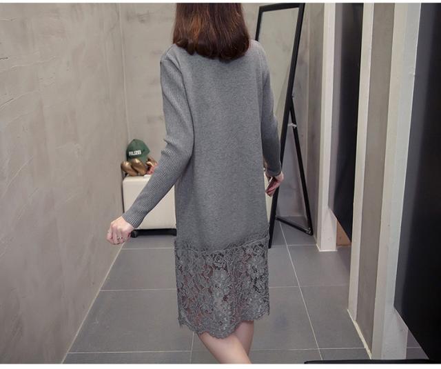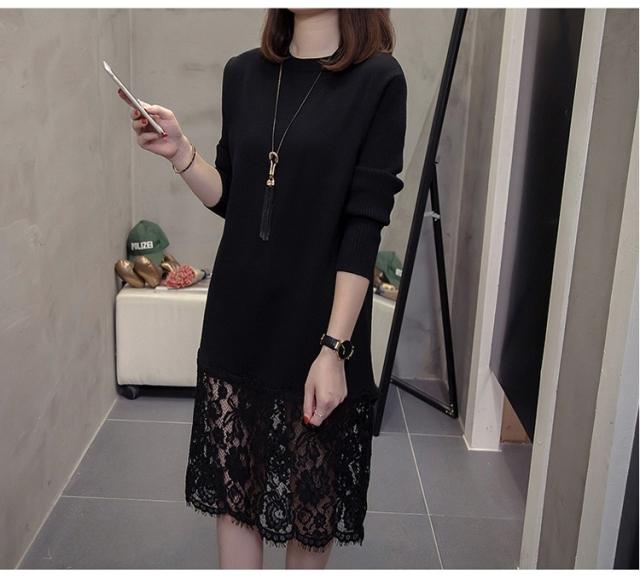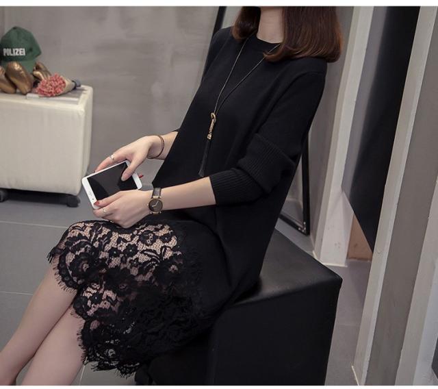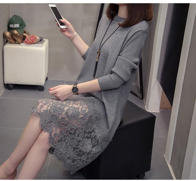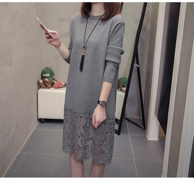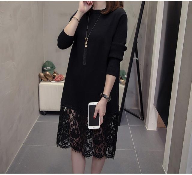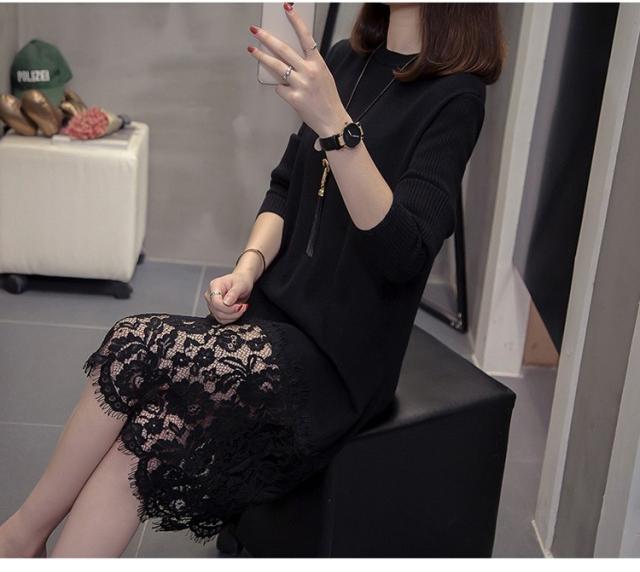 ニットワンピース レディース 40代 秋冬 きれいめ 膝丈ワンピース 長袖 レース切り替えワンピース ニットスカート 結婚式ドレス 大きいサイズ セーター 着痩せ