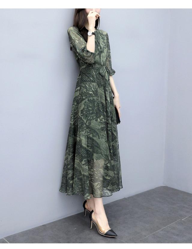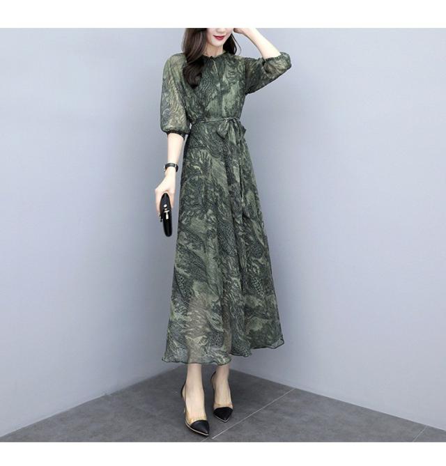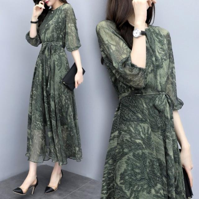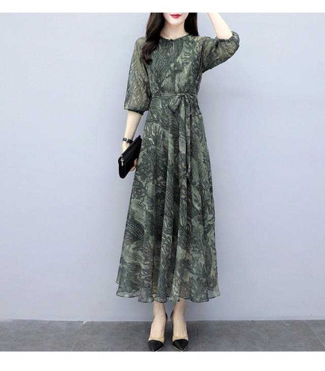 ワンピース レディース 40代 シフォンワンピース 春新作 マキシワンピース 七分袖 花柄ワンピース フレアスカート 通勤 結婚式