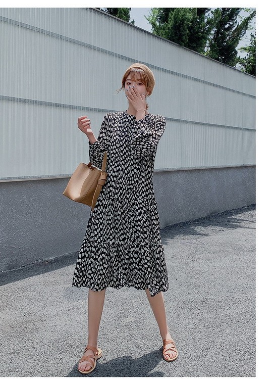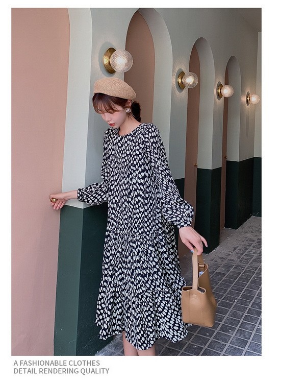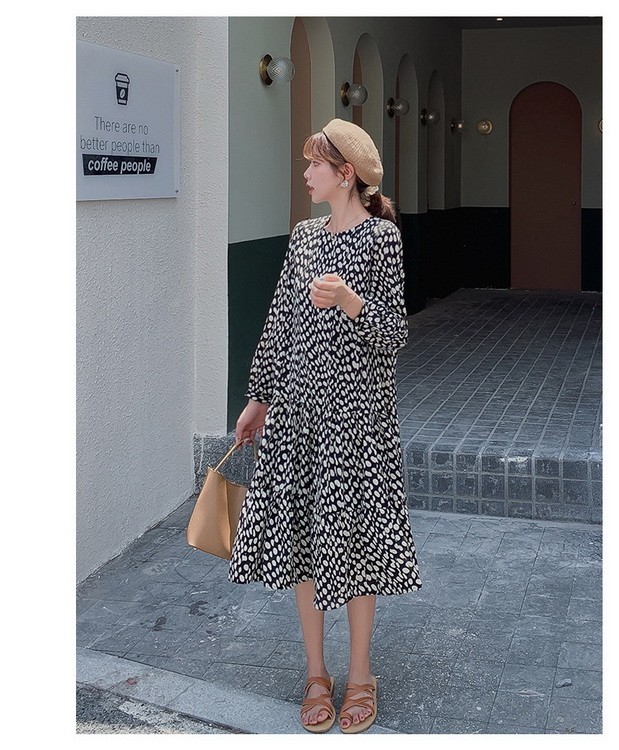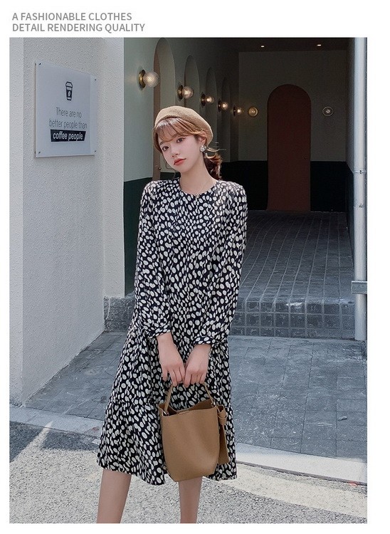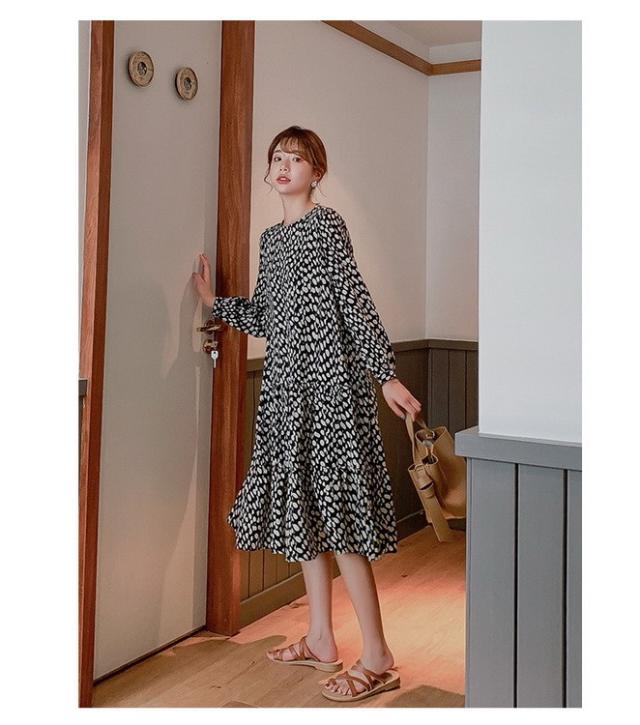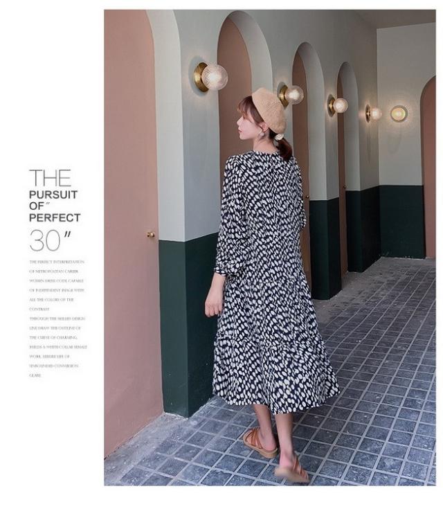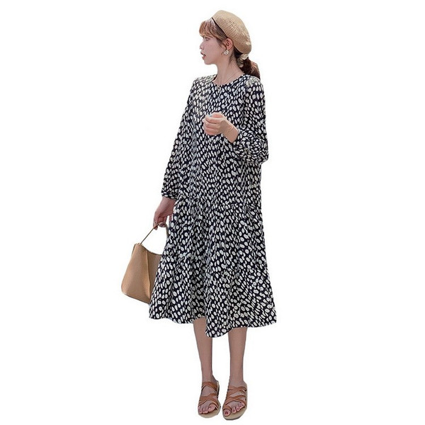 ワンピース レディース 40代 キレイめマキシワンピース 春秋 長袖ワンピース フレアスカート ドット柄シフォンワンピース 着痩せ オシャレ お出かけ 大人可愛い