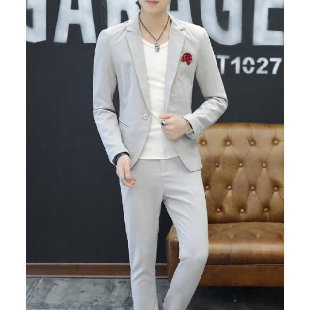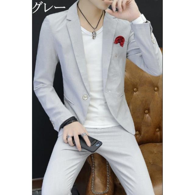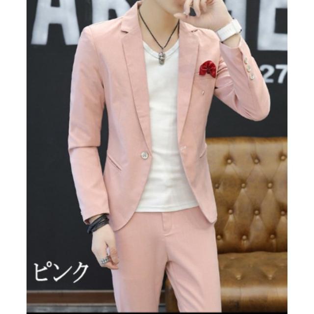 メンズ ビジネススーツ セットアップ 長袖 2点セット カジュアルスーツ テーラードジャケット 着? 紳士服 無地 結婚式