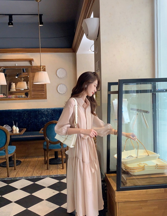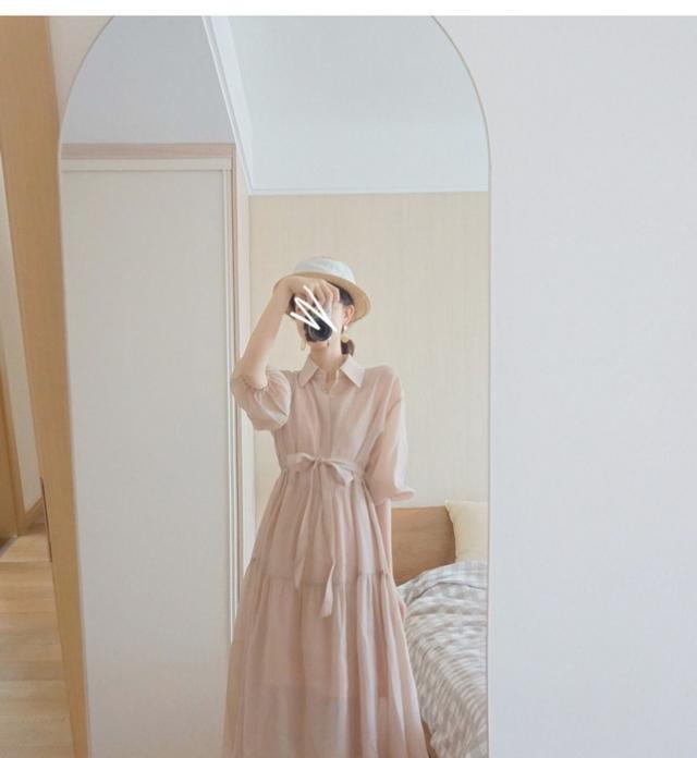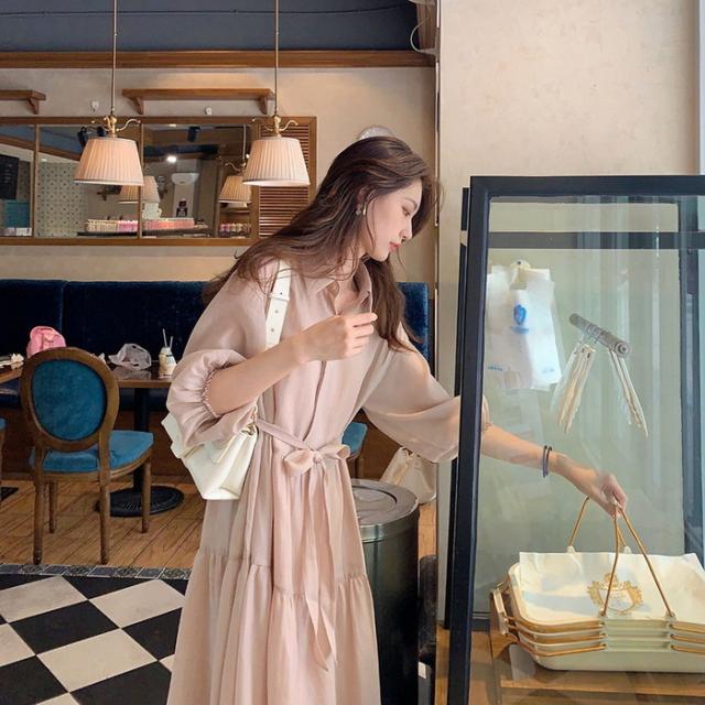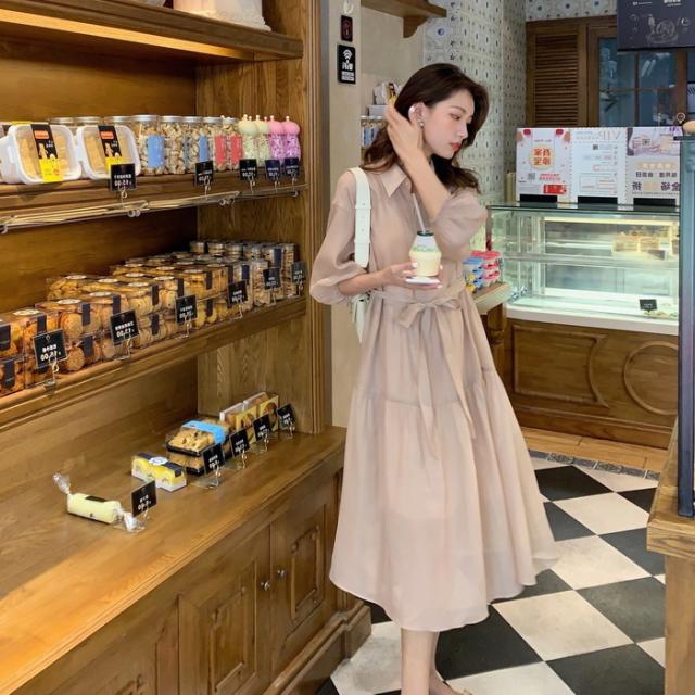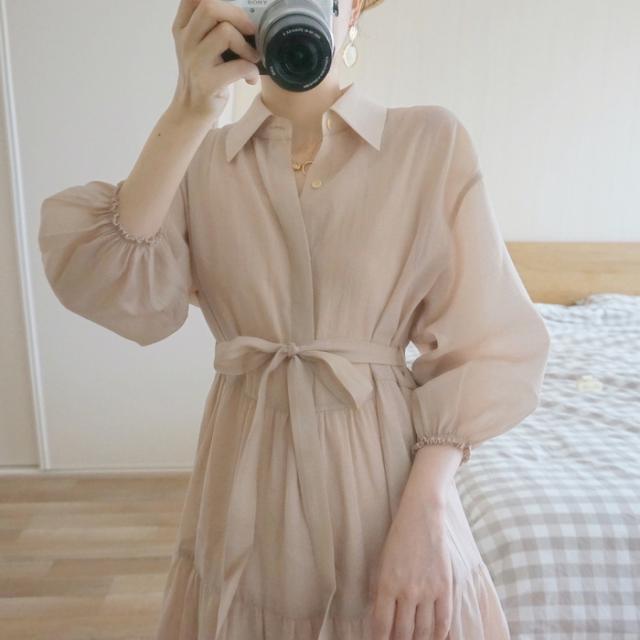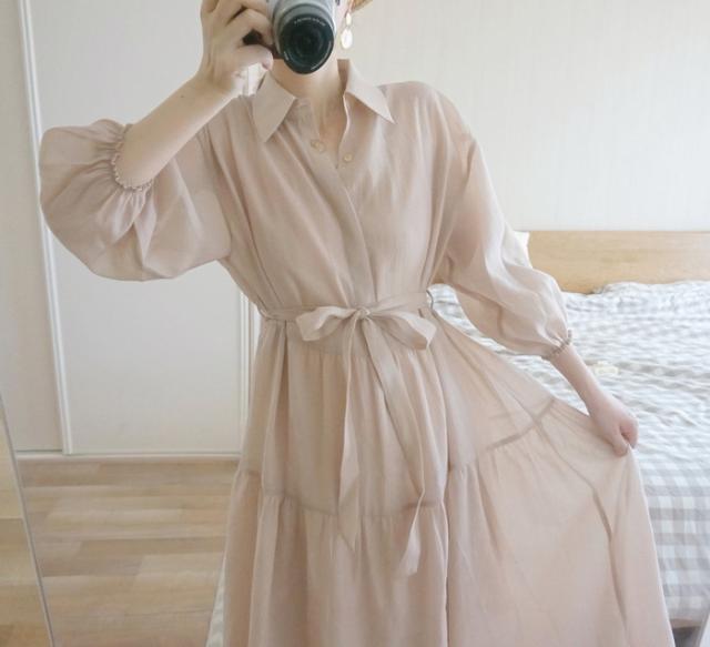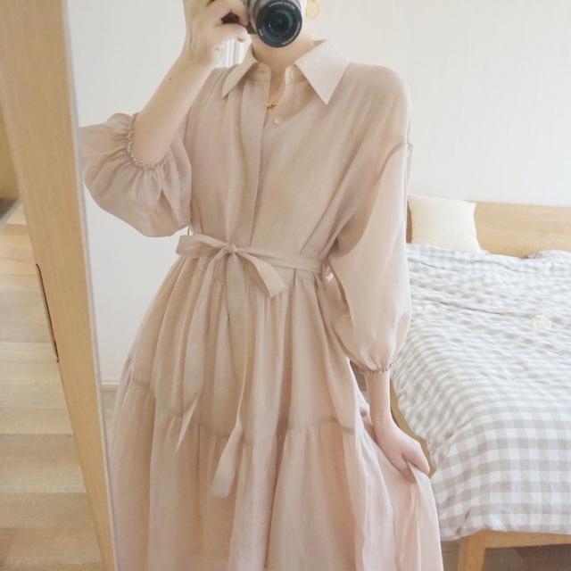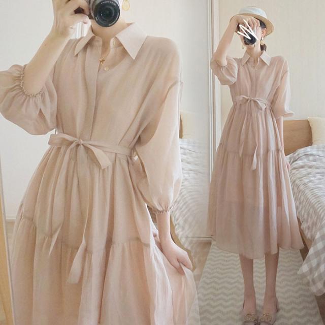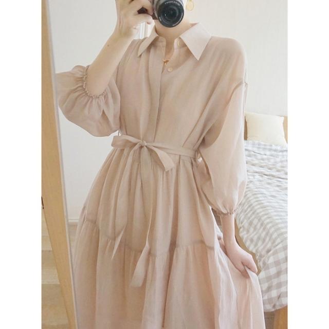 シャツワンピース レディース 40代 マキシ丈ワンピース 春秋 五分袖ワンピース パフスリーブ フレアスカート オシャレ通勤 結婚式ドレス 大人上品 30代 50代