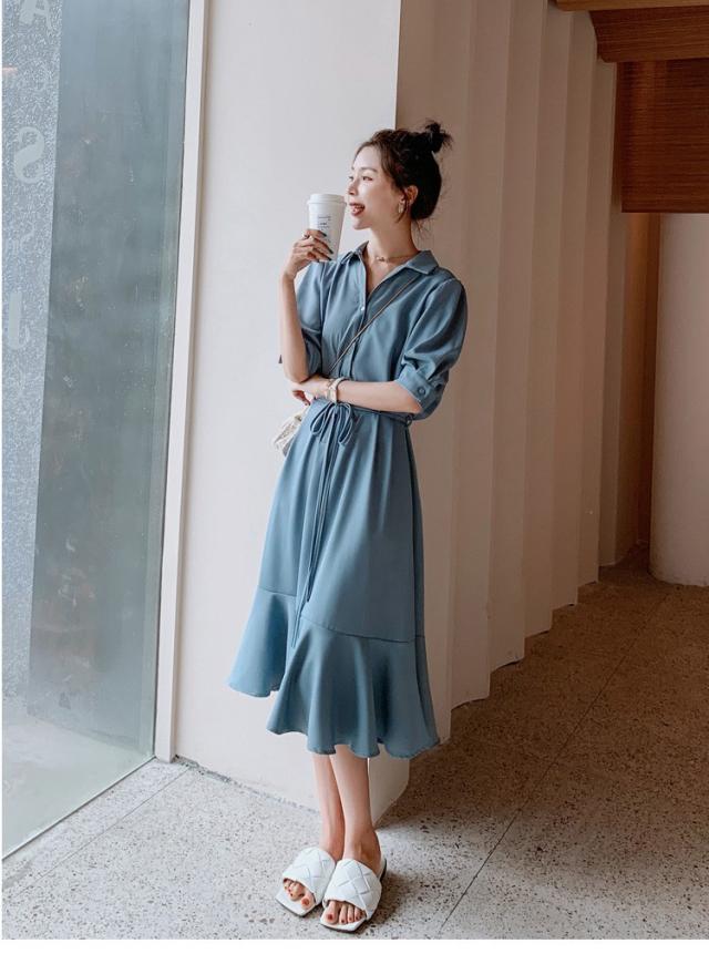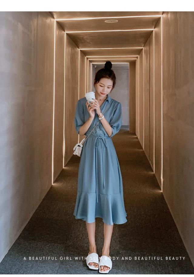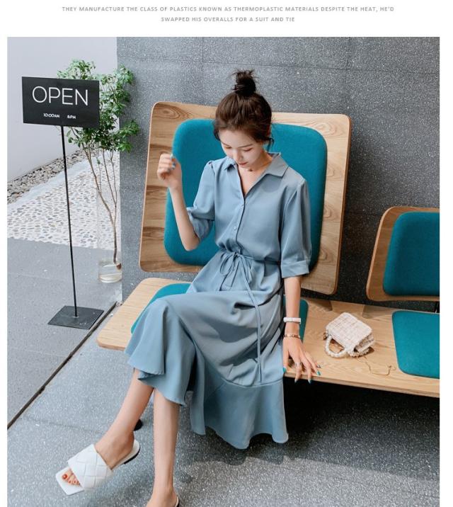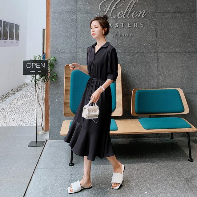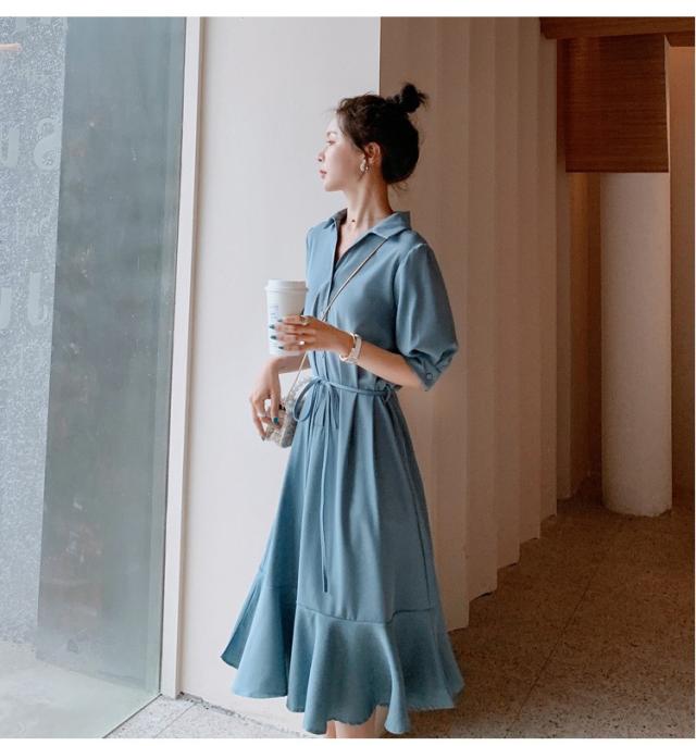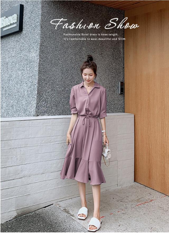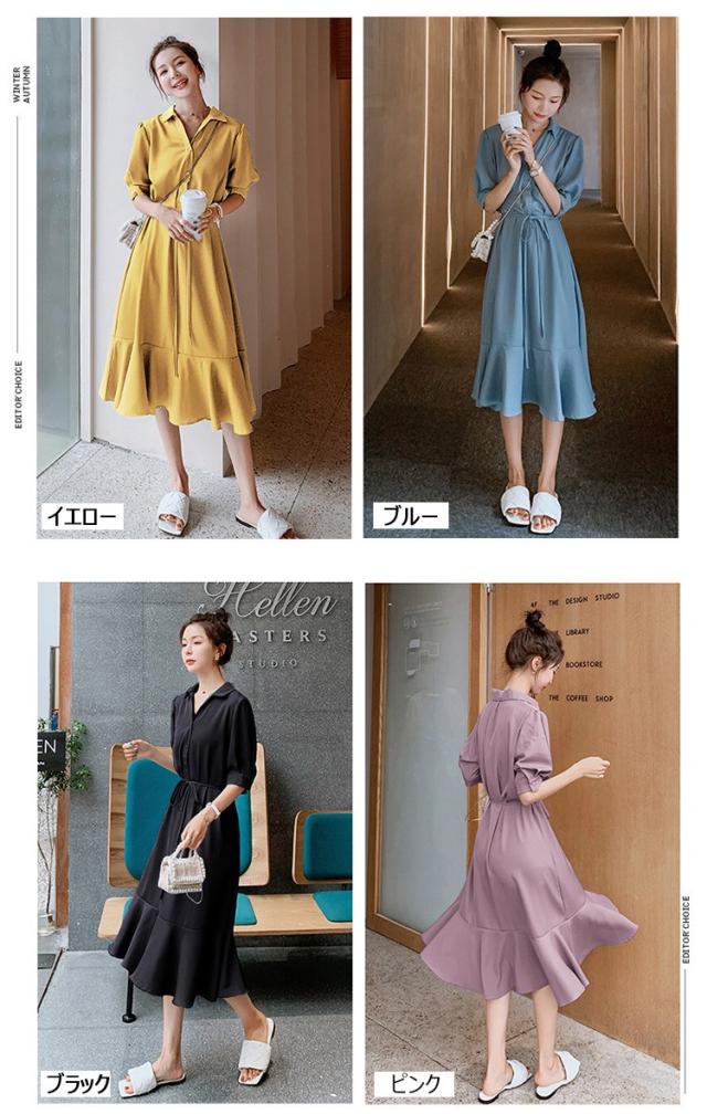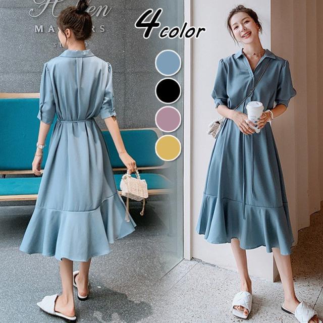 シャツワンピース レディース 40代 マキシワンピース 春夏 五分袖ワンピース 無地 シャツフレアスカート オシャレ 結婚式ドレス お出かけ 大人可愛い30代 50代