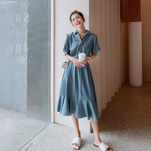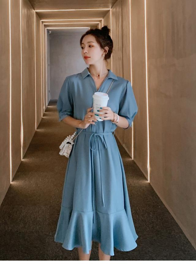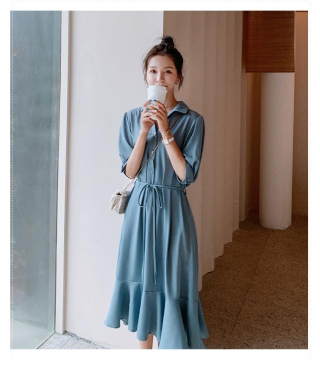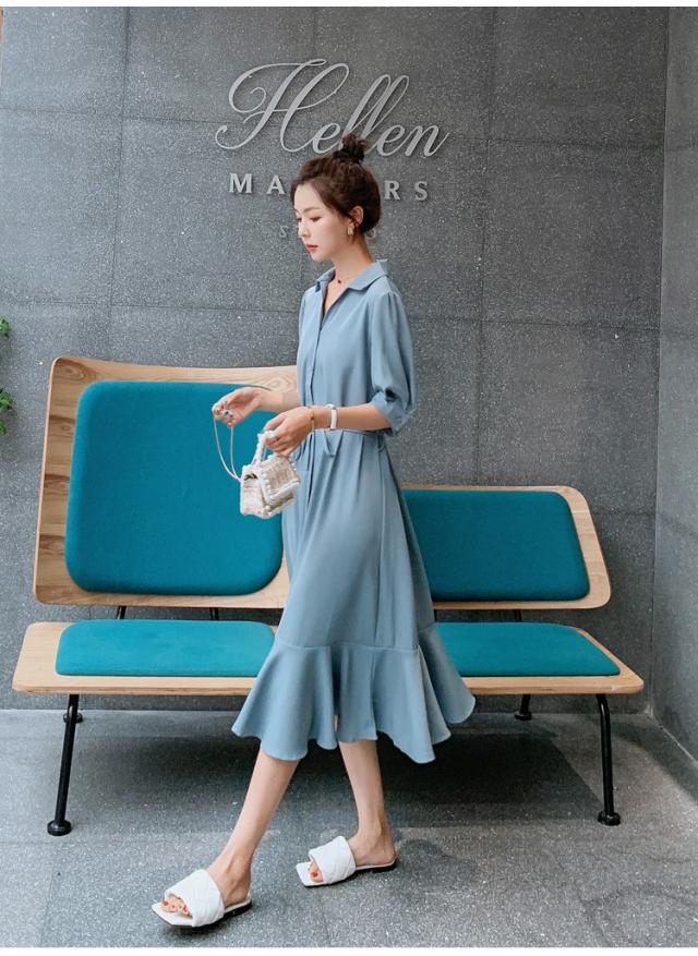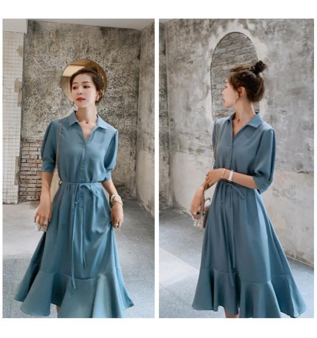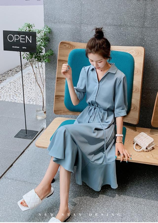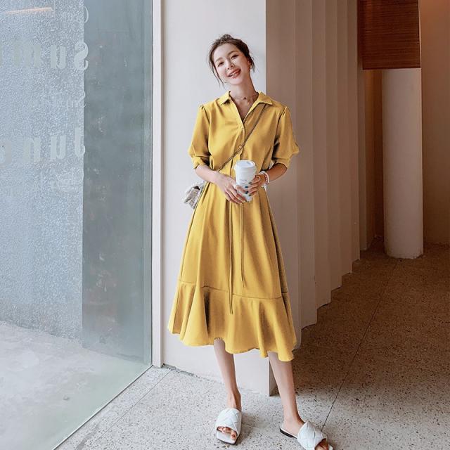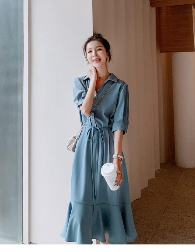 シャツワンピース レディース 40代 マキシワンピース 春夏 五分袖ワンピース 無地 シャツフレアスカート オシャレ 結婚式ドレス お出かけ 大人可愛い30代 50代