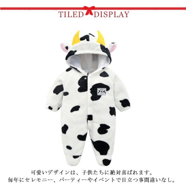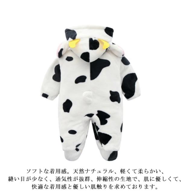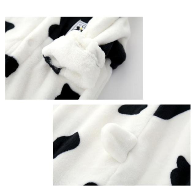 ベビー服 牛柄 ロンパース パジャマ 着ぐるみ カバーオール 新生児 動物着 ルームウェア ベビー 赤ちゃん コスチューム 防寒 キッズ 子供服 暖かい 女の子 男の子 長袖 もこもこ 秋冬 あったか 出産祝い 部屋着 百日祝い 記念写真 70 80 90 95