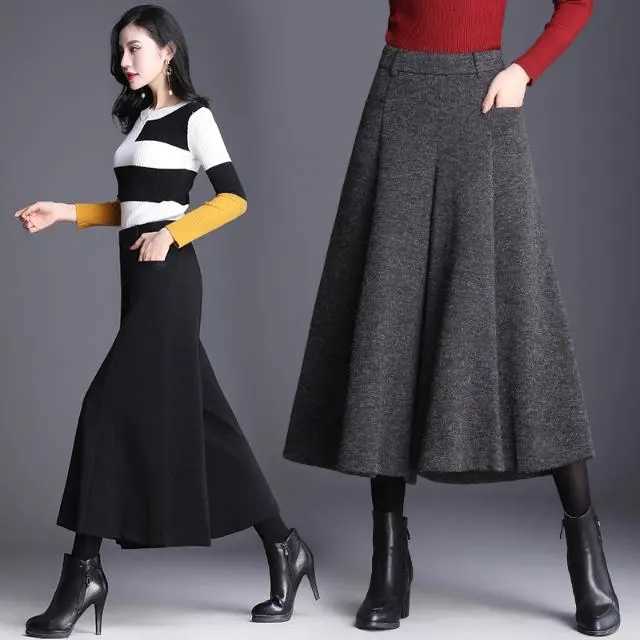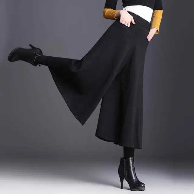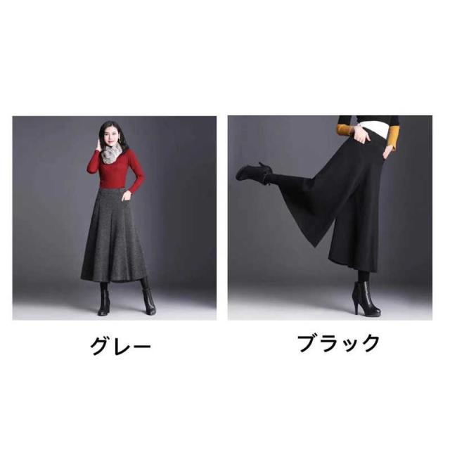 ハイウエスト ワイドパンツ 秋冬 9分丈 フレアパンツ ガウチョパンツ ズボン スカーチョ スカンツ ボトムス レディース 厚手 体型カバー 高見え 着?せ ワイドシルエット 通勤 可愛い ブラック グレー