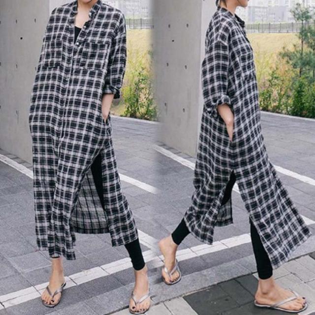 シャツワンピース レディース 40代 キレイめ マキシ丈ワンピース チェック柄 長袖ワンピース 綿麻混 通勤 大きいサイズ 上品 着痩せ