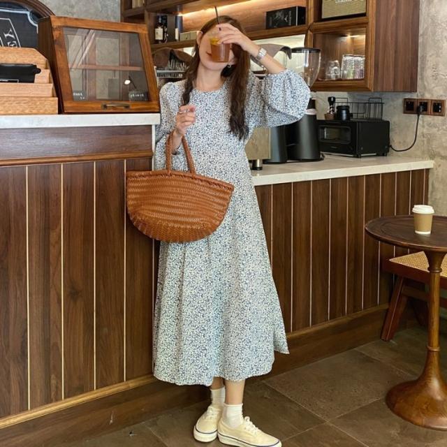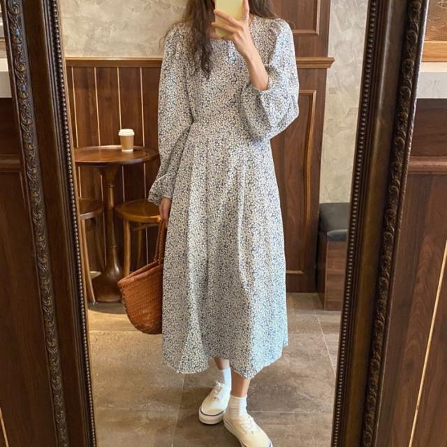 ワンピース レディース 40代 シフォンワンピース 秋新作 きれいめ マキシワンピース 長袖 花柄ワンピース 通勤 結婚式 お出かけ 大人