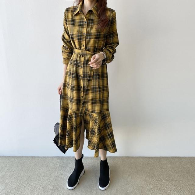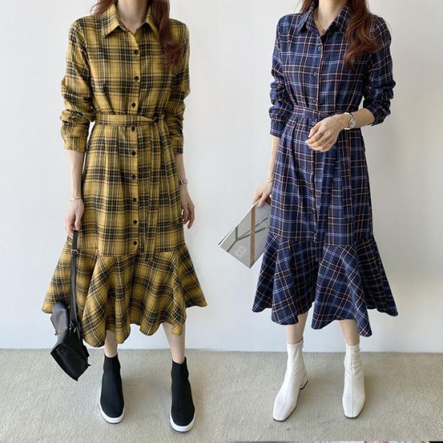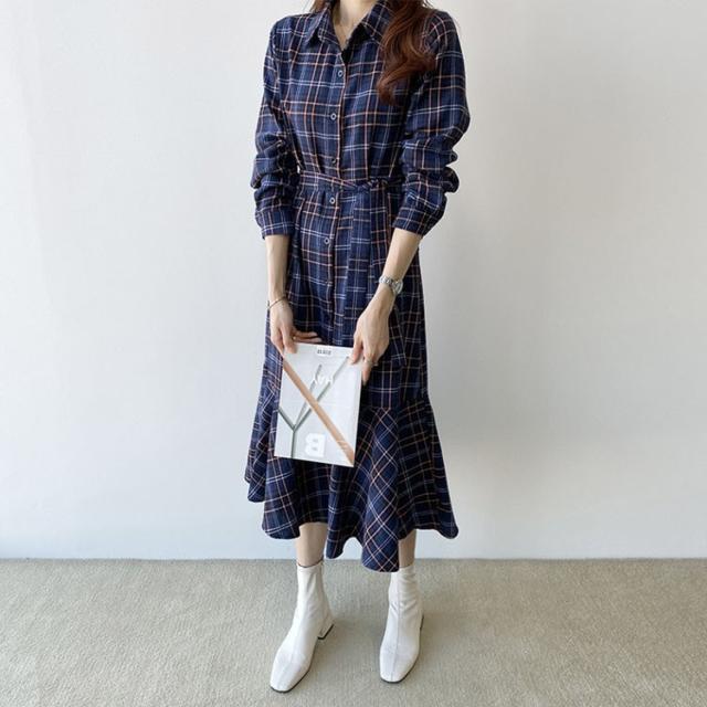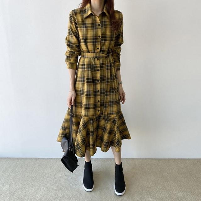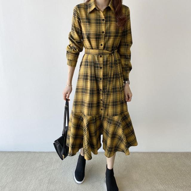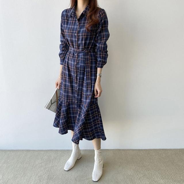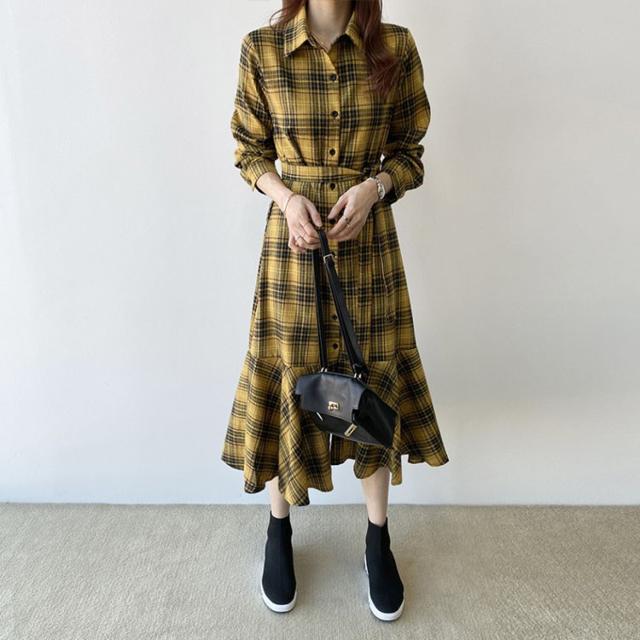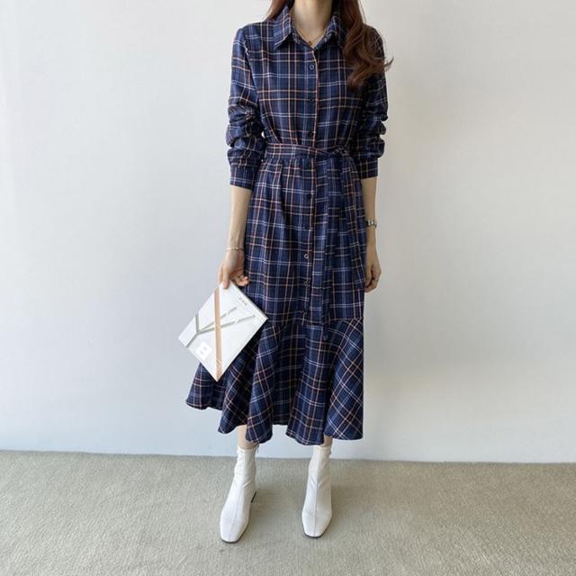 ワンピース レディース 30代 40代 春秋 マキシワンピース きれいめ チェック柄ワンピース 長袖 Aライン 膝丈ワンピース 通勤 着痩せ ロング オシャレ 上品 2色