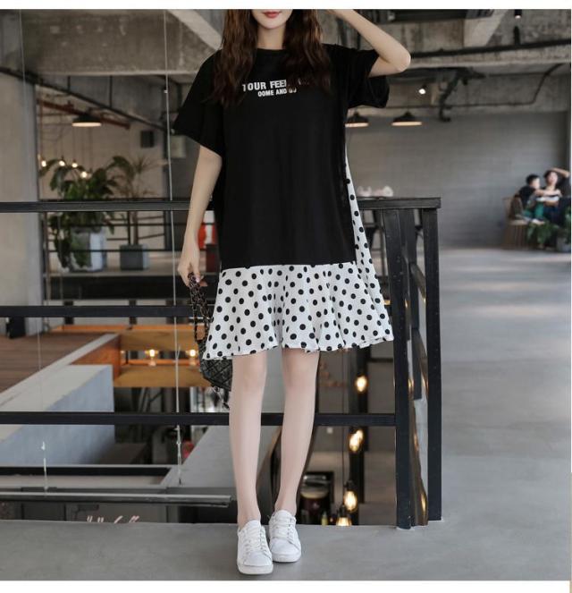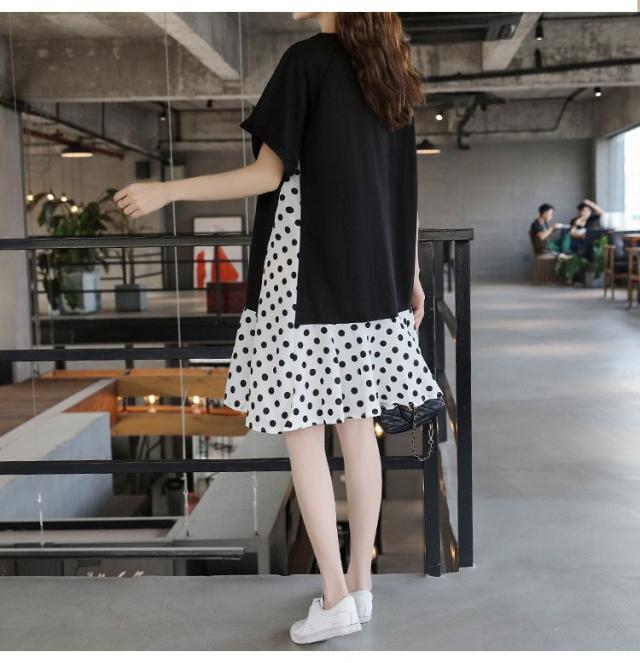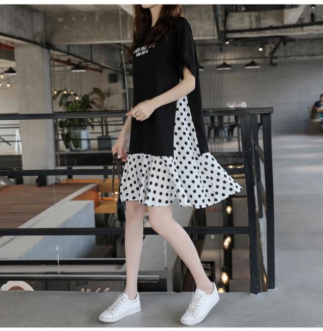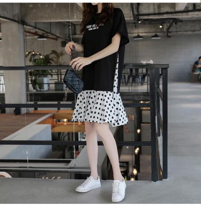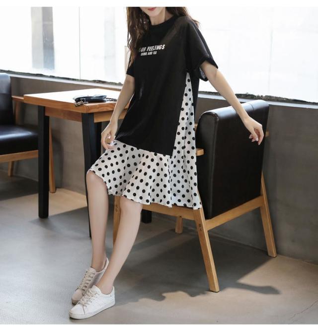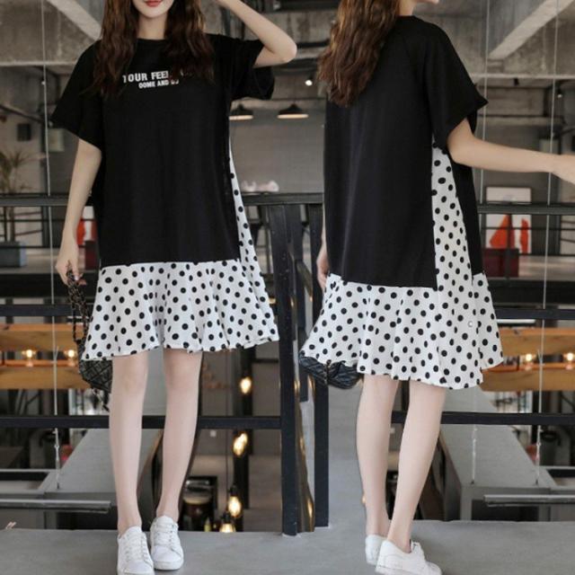 ロングワンピース 夏 半袖 コットンリネン ゆったり ドット柄 ベルト付き 体型カバー Aライン おしゃれ ママワンピース 上品 大人 夏物 30代 40代 50代