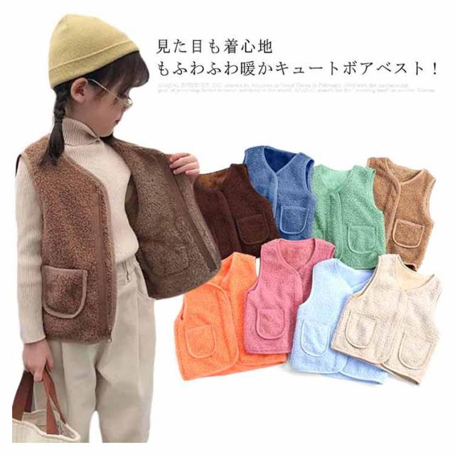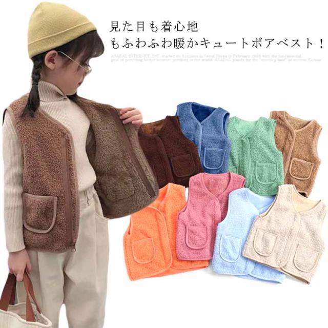 ボア ベスト ボアベスト キッズ ジャケット アウター ベビー服 ベスト ベビーベスト ジュニア ベビー 裏起毛 上着 羽織 防寒 暖かい 秋 冬 袖なし ノースリーブ 子供服 キッズ もこもこ ふわふわ トップス 送料無料