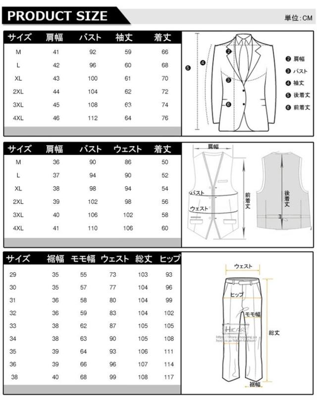| 色 | ホワイト3ピーススーツ グレー3ピーススーツ ブラック3ピーススーツ ?(こん)3ピーススーツ |