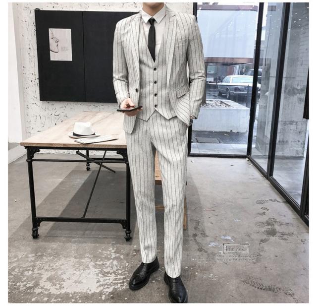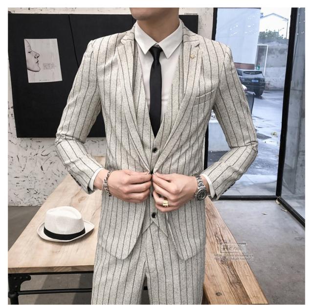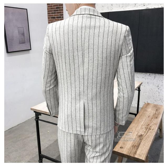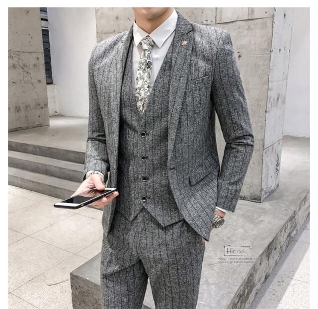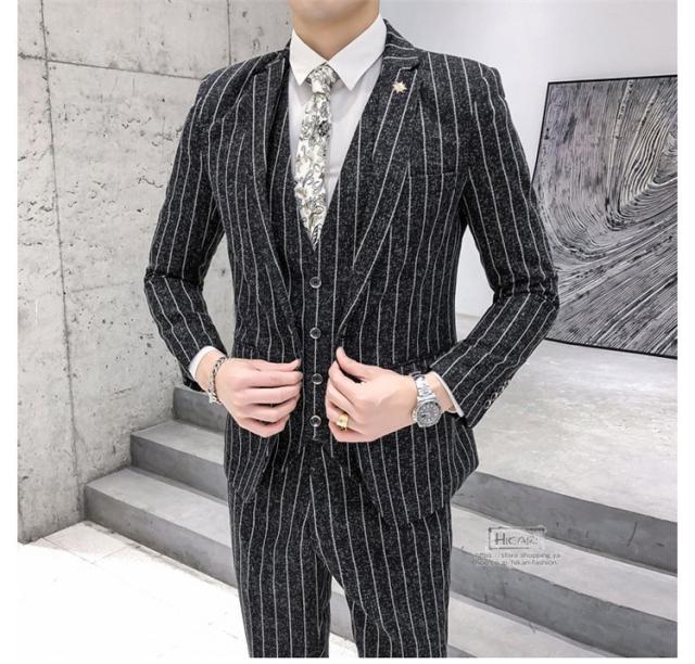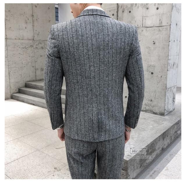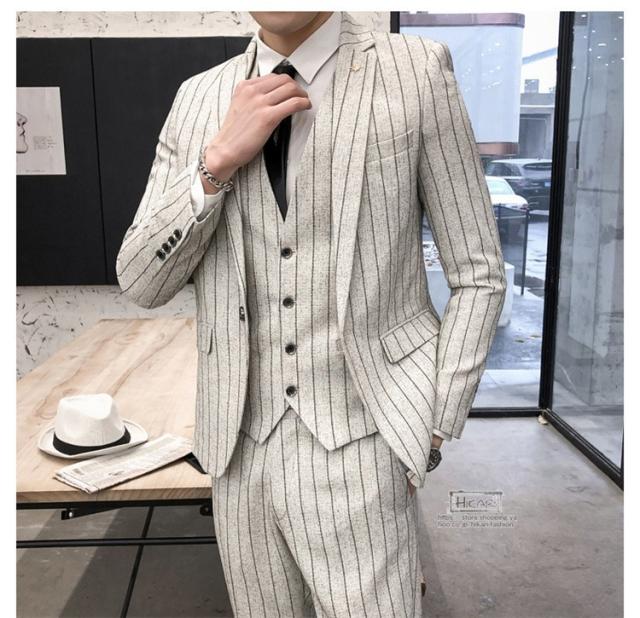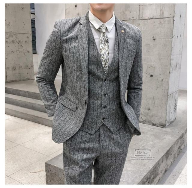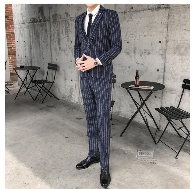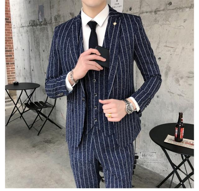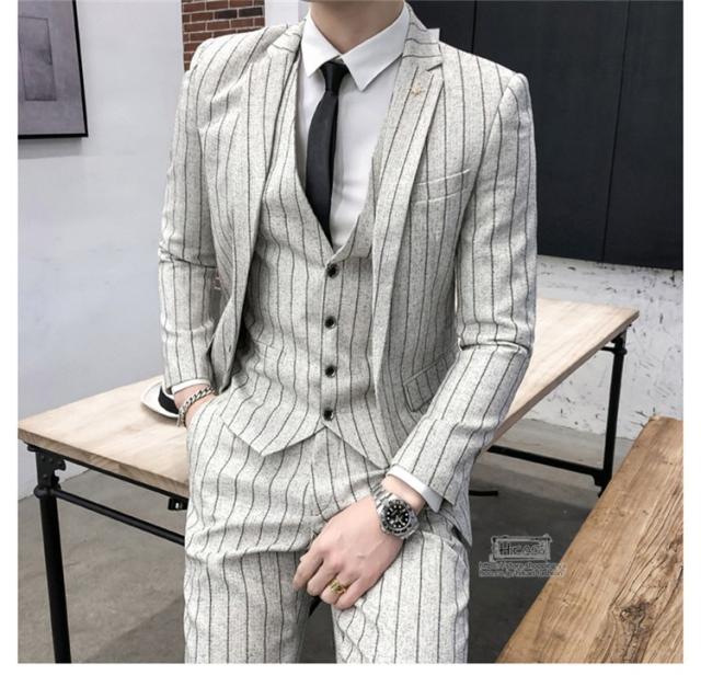 スーツ メンズ ストライプ スリーピーススーツ カジュアルスーツ ビジネススーツ スタイリッシュ スリム 3点セット