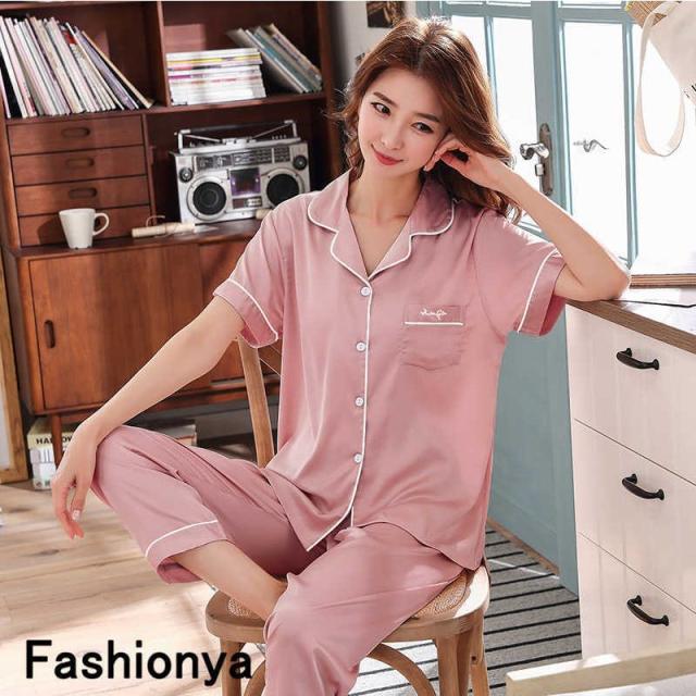 ペアお揃い パジャマ カップル 冷感 レディース メンズ ルームウエア 夏 サテン シルク風 ペアルック 半袖 ロングパンツ 上下セット 部屋着