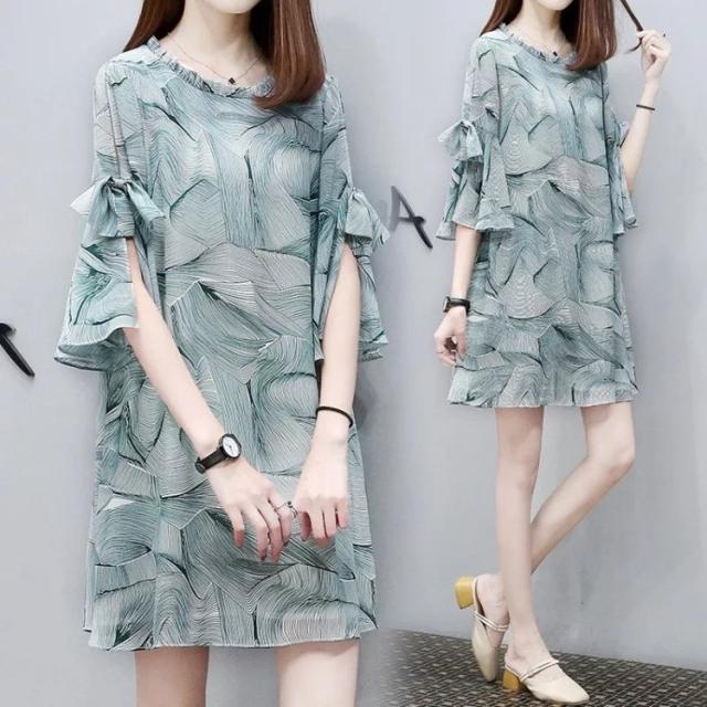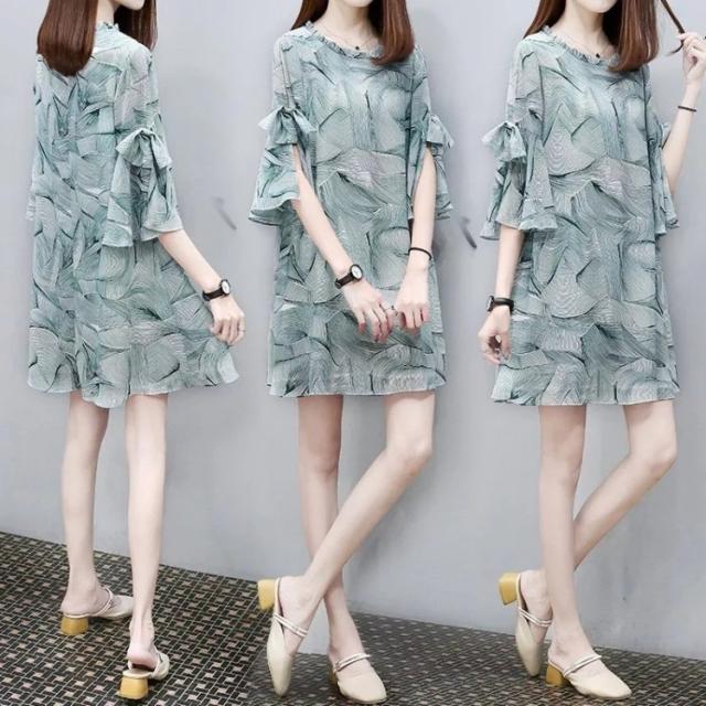 ワンピース レディース ワンピース キレイめ 膝丈ワンピース 夏 半袖 シフォンワンピ 花柄 フリル ロング丈ワンピ オシャレ 着痩せ マキシワンピース