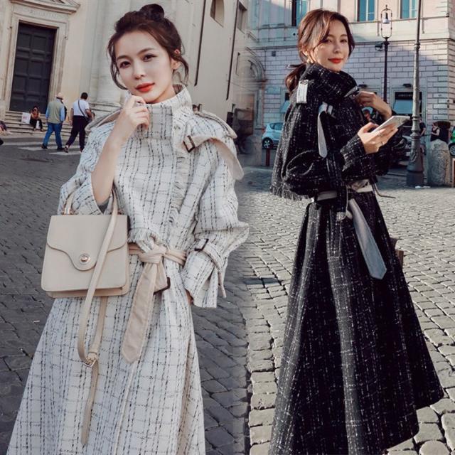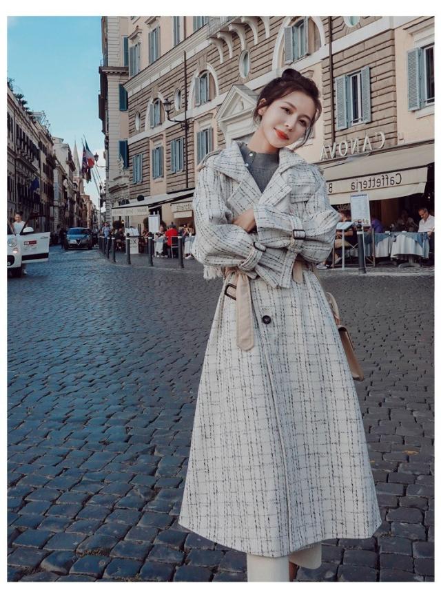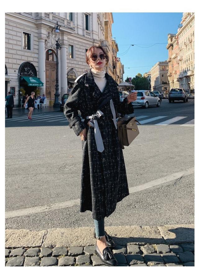 ラシャコート レディース ダブルブレスト ラシャジャケット チェック柄 ロング丈コート 秋冬 カジュアル スプリングコート トレンチコート 着痩せ アウター
