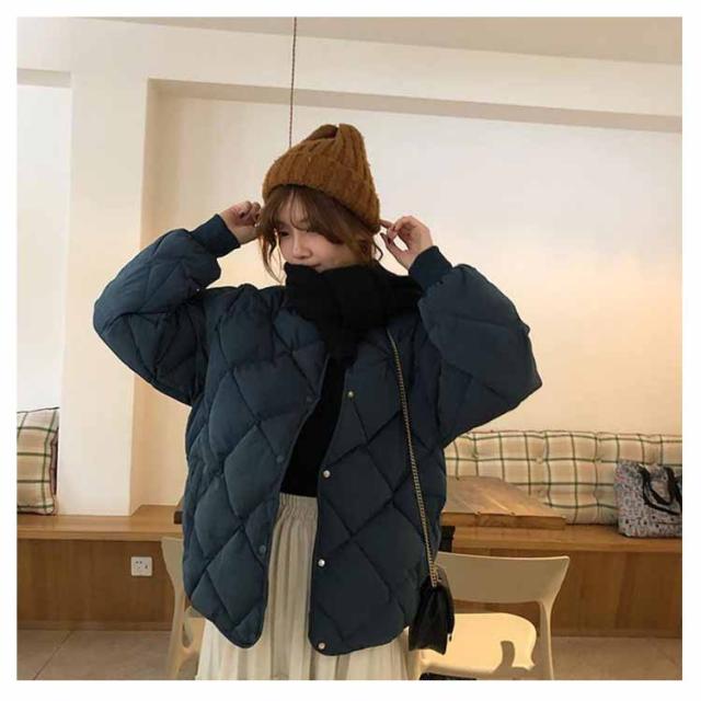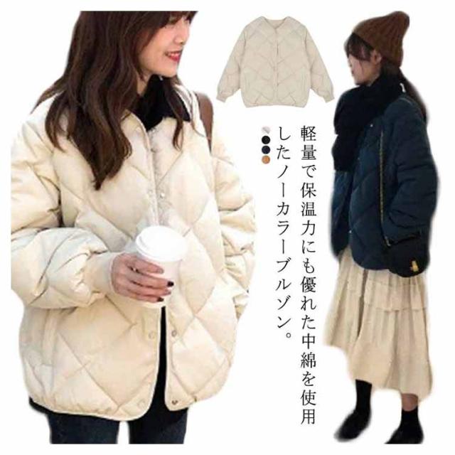 キルティング ジャケット ジャンパー 中綿 レディース ノーカラー アウター ブルゾン 長袖 厚手 秋 冬 綿入り ゆったり あったか 無地 保温 防寒 モード 通勤 通学 紺 ネイビー 黒 ブラック S M L 2L 3L