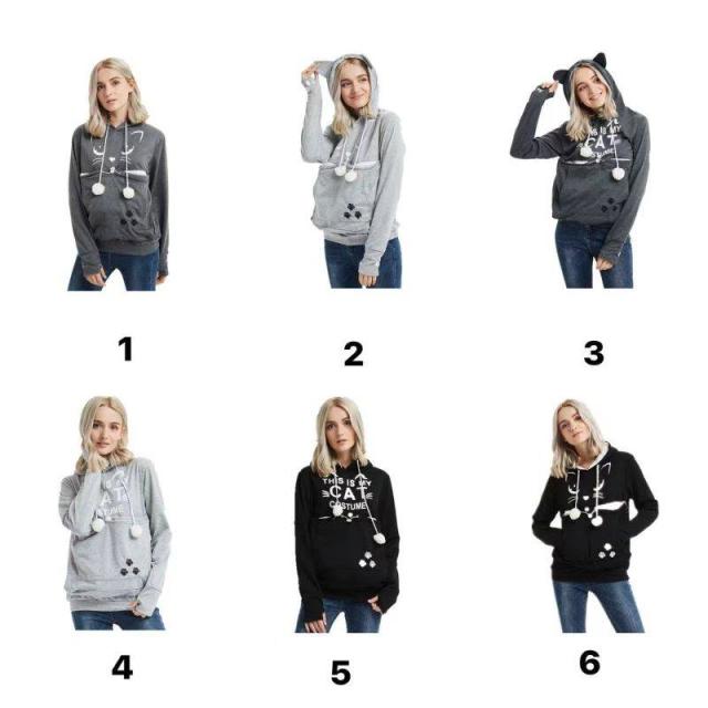 猫 ポケット パーカー にゃんこ 冬 トップス レディース メンズ トレーナー ゆったり 猫抱っこ パーカー 猫耳 フード 猫 犬 小動物 プルオーバー お腹のポッケに猫 収納 部屋着 お出掛け