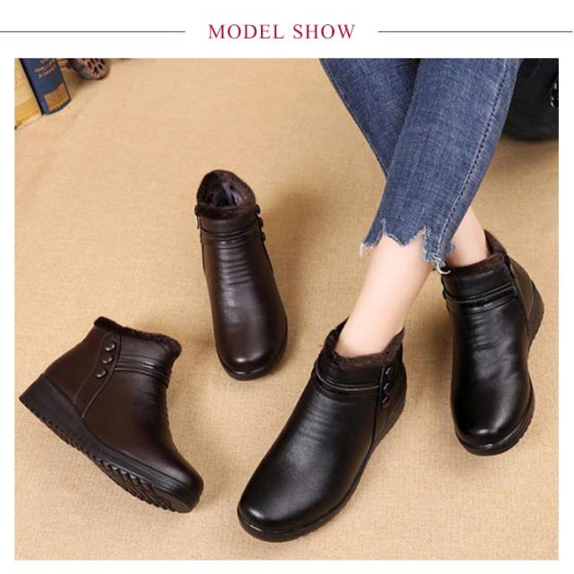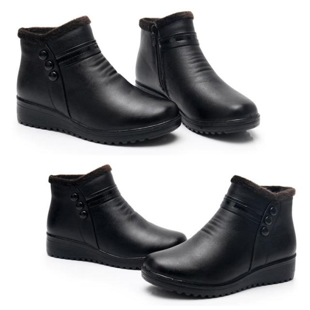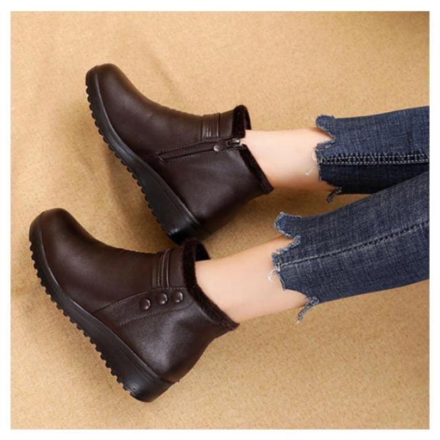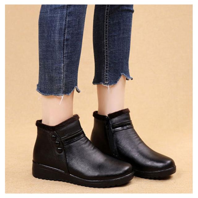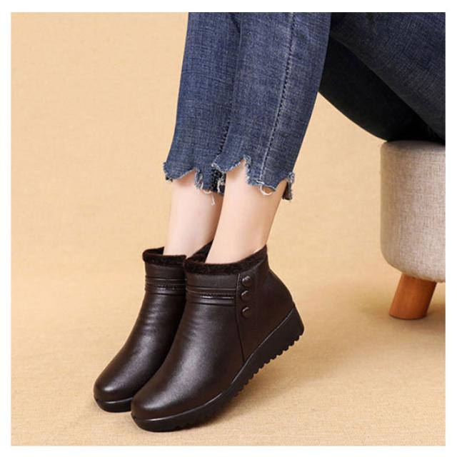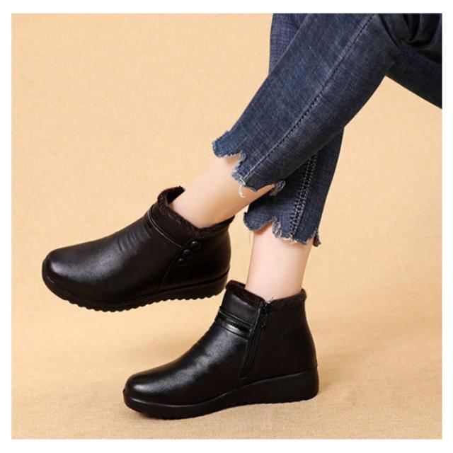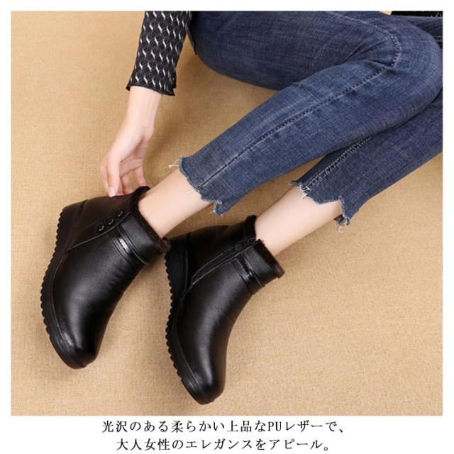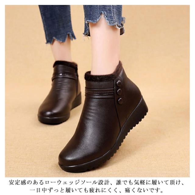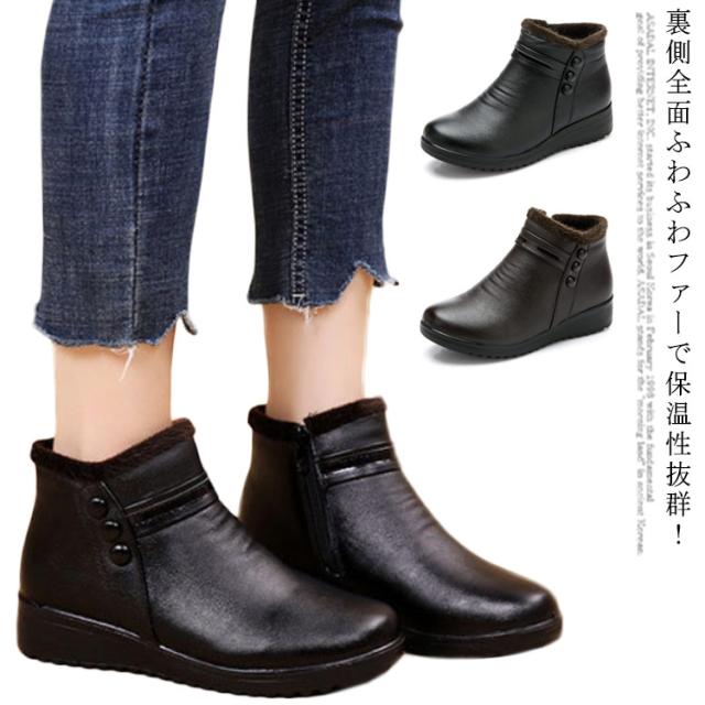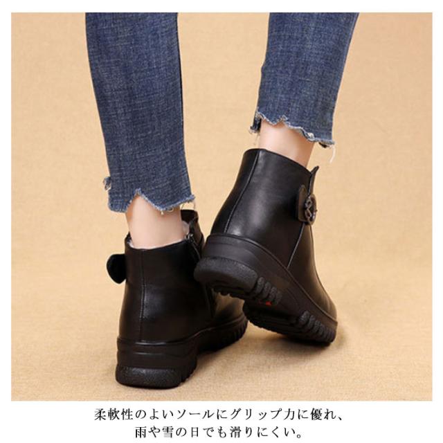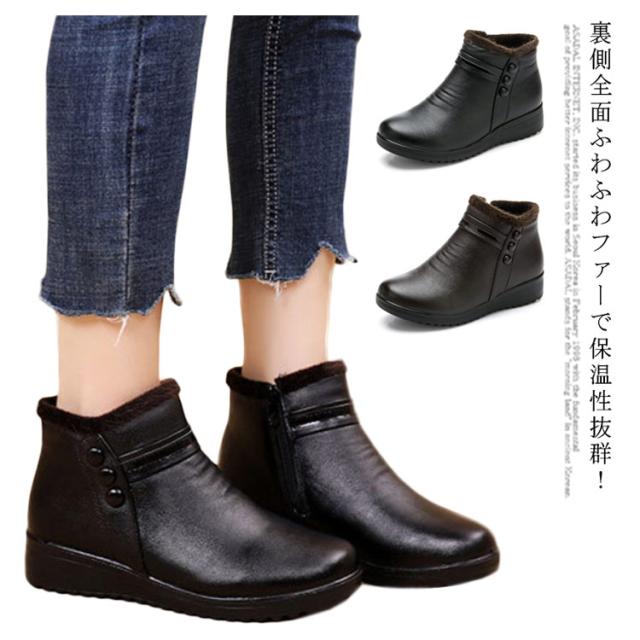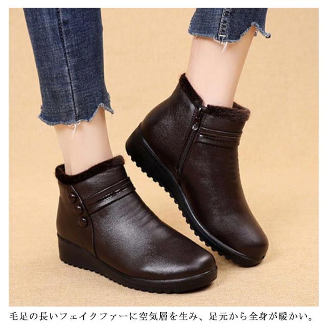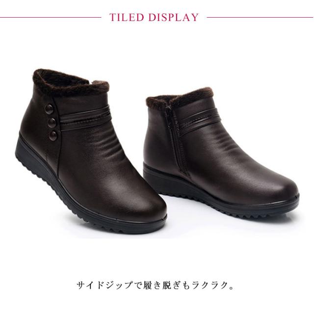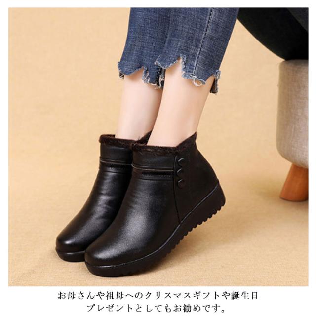 ショートブーツ ブーティー 裏ボア フラットシューズ 防寒 ムートンブーツ 婦人靴 敬老の日 ギフト 50代60代70代80代 冬靴 光沢 革靴 ブーツ