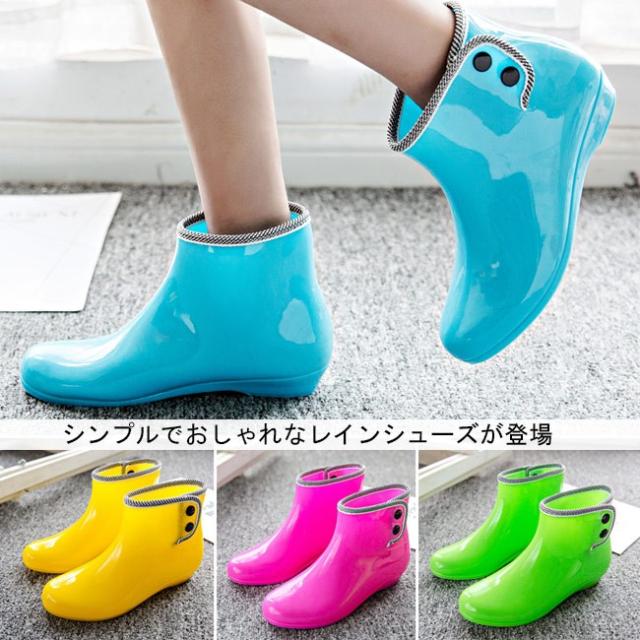 レディース レインシューズ 無地 雨 梅雨 雨靴 春 秋 夏 大きいサイズ 靴 雨の日 お洒落 レインブーツ シンプル 全4色 カラフル
