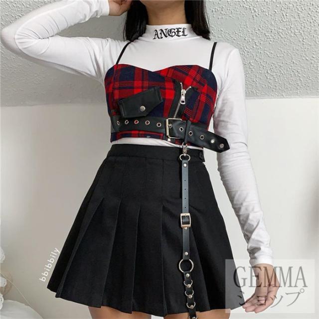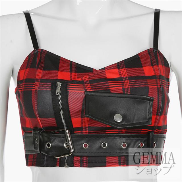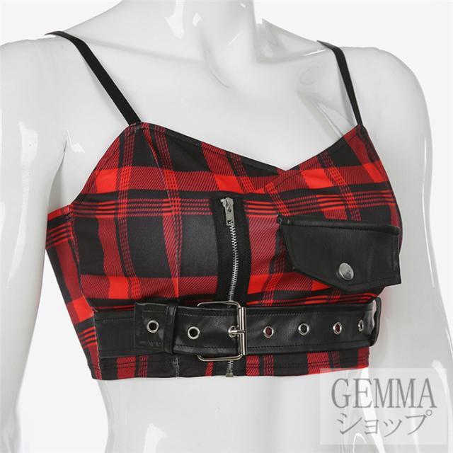 インナー トップス キャミソール ヒップホップ ダンストップス レディース チェック柄 へそだし チェック柄 HIPHOP 韓国ファッション イベント
