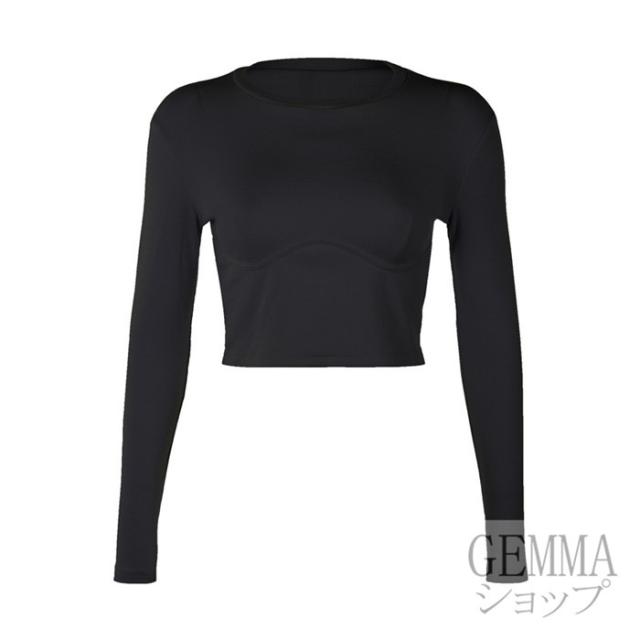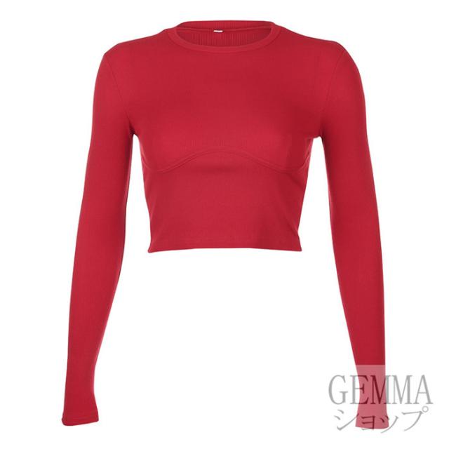 Tシャツ 長袖 ダンス衣装 へそだし レディース 無地 ヒップホップ カットソー ショート丈 ブラック ホワイト レッド 白 グレー 細身 ジャズ