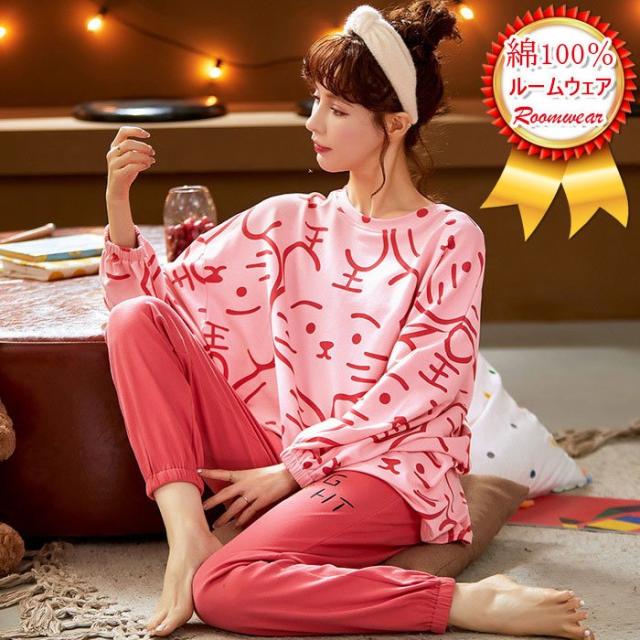 パジャマ ルームウェア レディース 秋冬 長袖 パジャマ 綿100%ルームウェア ロングパンツ上下セット 可愛いパジャマ 女性 部屋着 寝巻き 韓国風 秋パジャマ