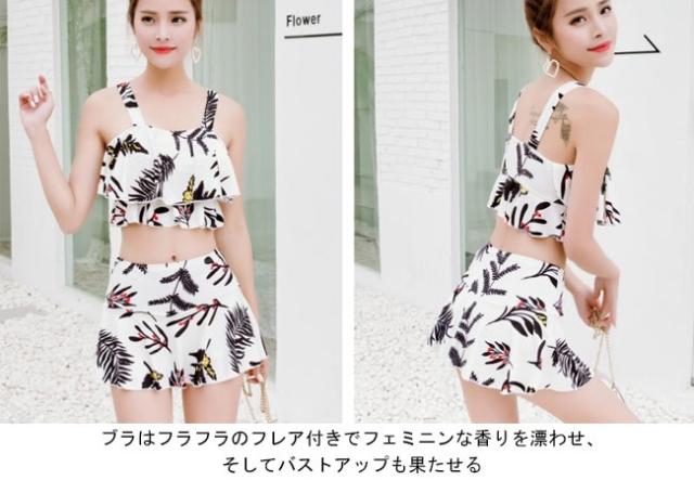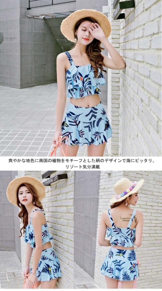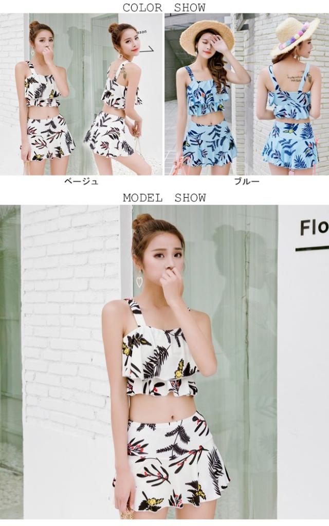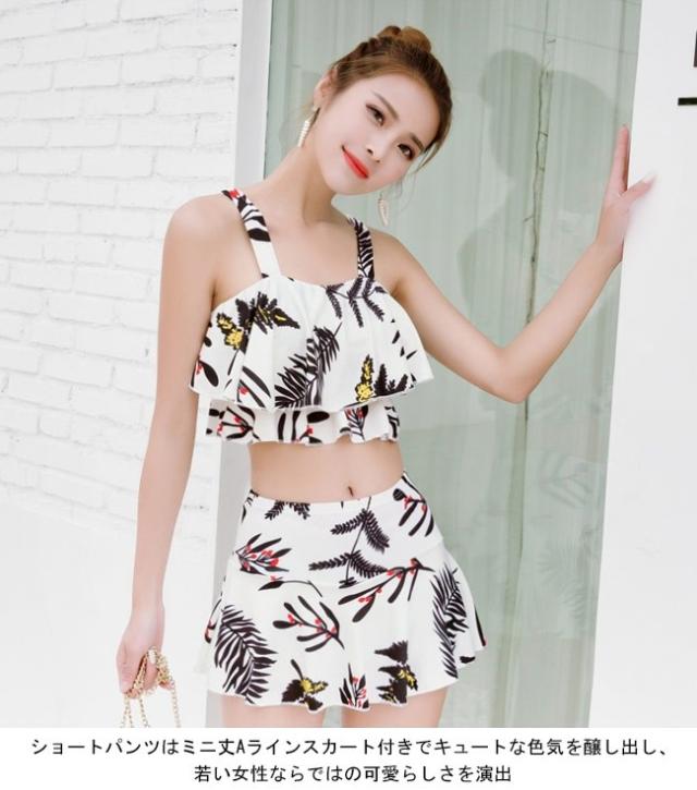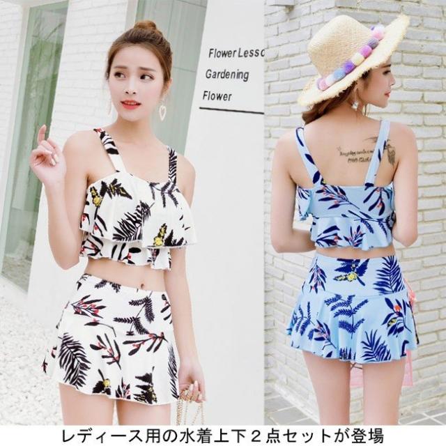 水着上下2点セット レディース ビキニ スイムウェア ワイヤーなし パッド付き タンキニ スカート付き短パン ビーチウエア バストアップ
