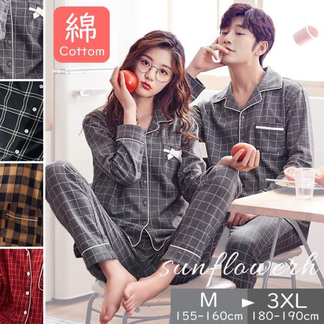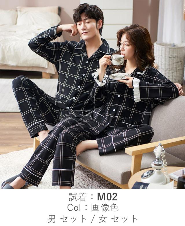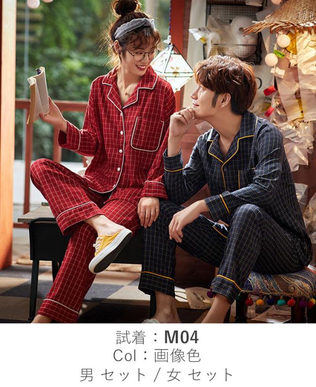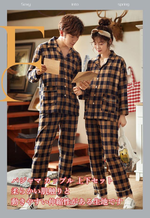 カップル パジャマ ペアルック ペア ルームウェア 秋 レディース メンズ 前開き 長袖 ペアお揃い 上下セット ゆったり 部屋着 夫婦 彼女 彼氏 大きいサイズ
