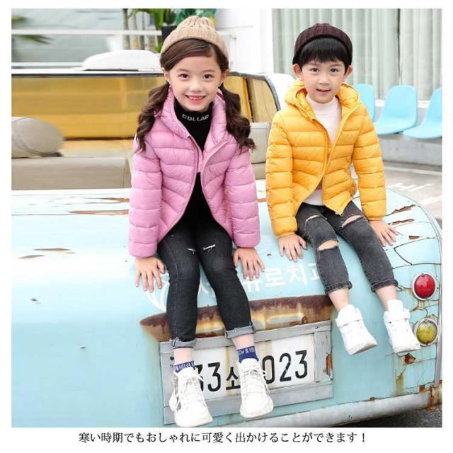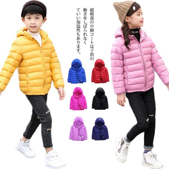 中綿ジャケット 子供服 ダウンジャケット 中綿入り キッズ 女の子 男の子 フード付き ライトアウター 中綿コート 超軽量 アウター コート ジャケット カジュアル ブルゾンジャンパー シンプル 11色 110cm-170cm お出かけ 通園 通学