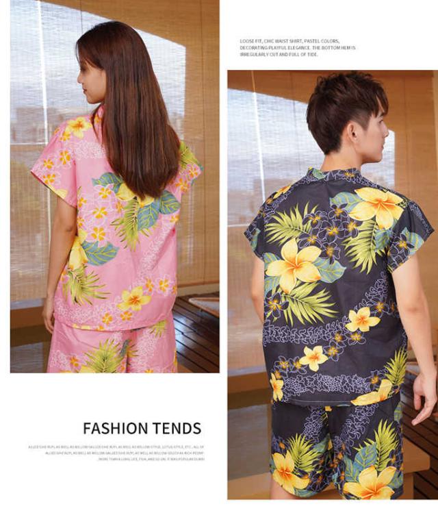 レディース メンズ パジャマ バスローブ 浴衣 トップス+パンツ 和風 花柄 温泉 ホテル 使い捨て シンプル カジュアル 寝巻 部屋着