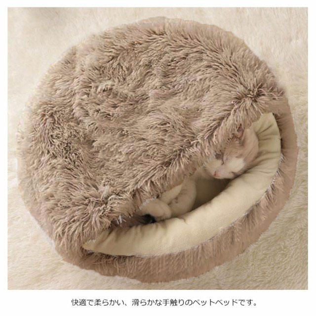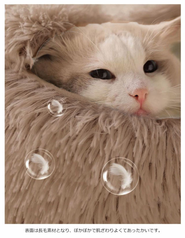 | ふわふわしたクッションベットで寝心地抜群な猫クッションです。 もぐりこむ猫の習性で、猫ベッドの入回の開回部が 小さく設計されており外の風を有効的に遮断できます。 表面は長毛素材となり、ぽかぽかで肌ざわりよくてあったかいです。 快適で柔らかい、滑らかな手触りのペットベッドです。 ご洗濯機での水洗い可能です。 | |