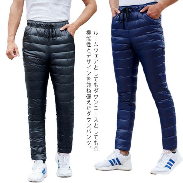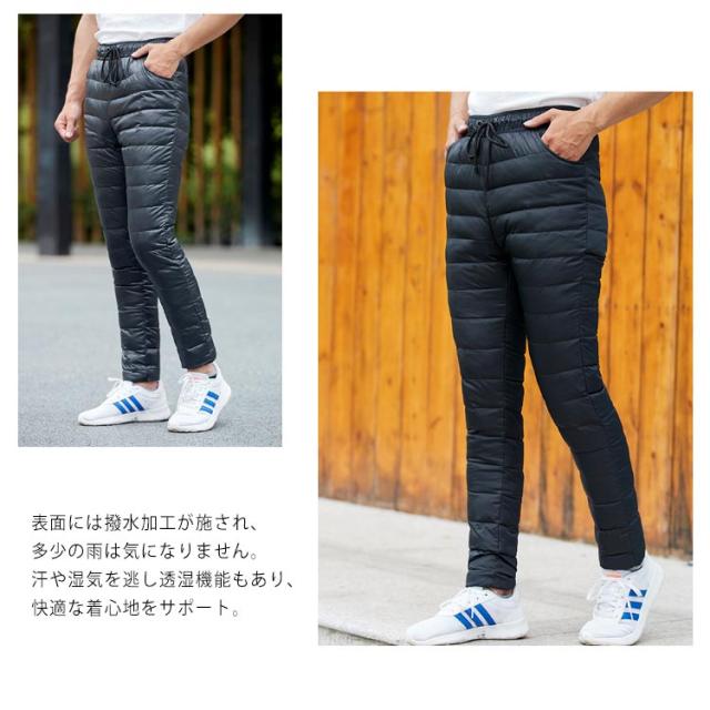ダウンパンツ メンズ 大きいサイズ 軽量 撥水 羽毛パンツ 防寒 登山 透湿 防風 ゴルフウェア ボトム イージーパンツ 細身 ホワイトダックダウン 部屋着 外出