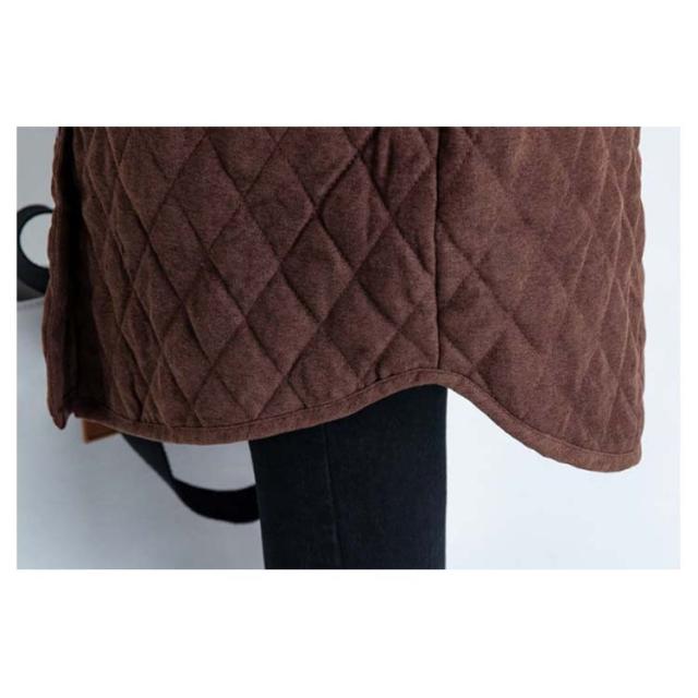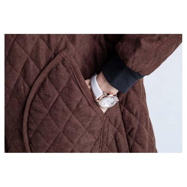 | 程よい厚みの中綿入りでさっと羽織れる手軽さが魅力です。 ロング丈なのにもたつかず、パイピングがすっきり魅せてくれるのも好印象。 便利なサイドポケットもついていて、デイリー使いはもちろん、アクティブな場面での着こなしにも◎ ノーカラーなので、クルーネックからハイネックまで合わせるインナーを選ばないのも嬉しい。 キルティングコートとして着用すれば、シックな大人っぽい装いになるので、お仕事の時に着ることもできそう。 初秋から春先までロングシーズン着用できる、大人カジュアルコーデに欠かせないおすすめアウターです。 | |