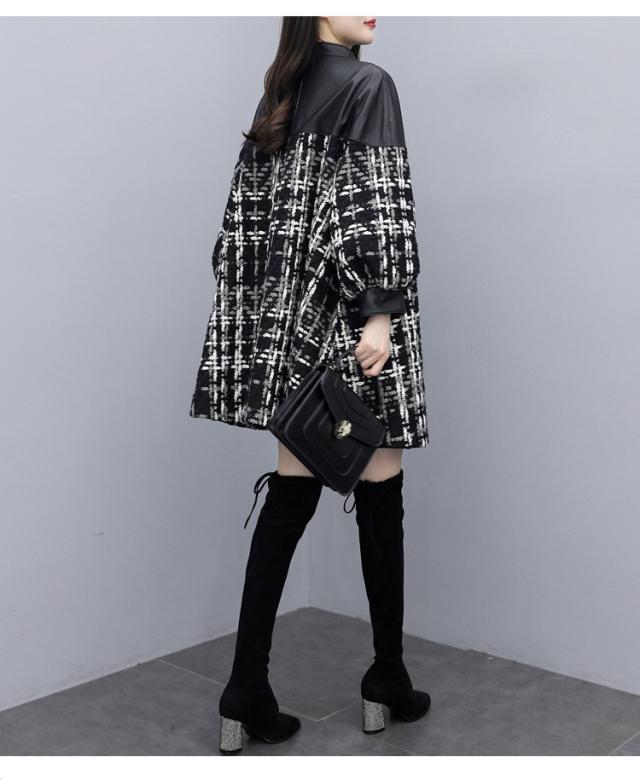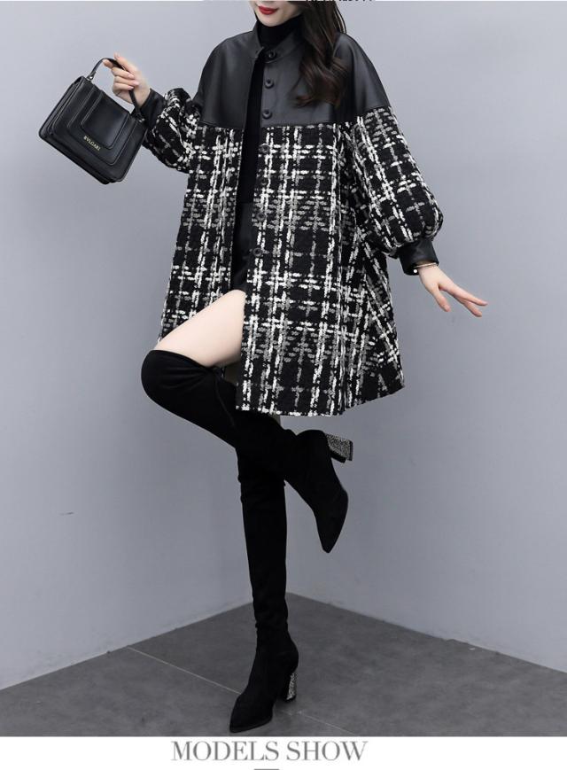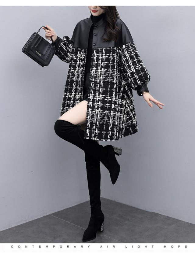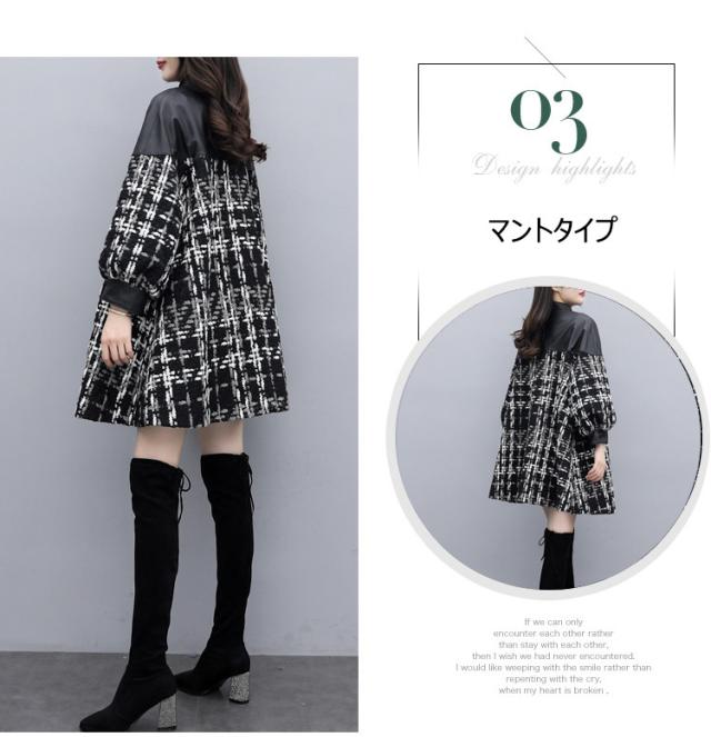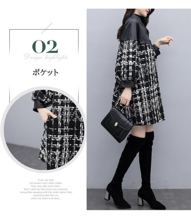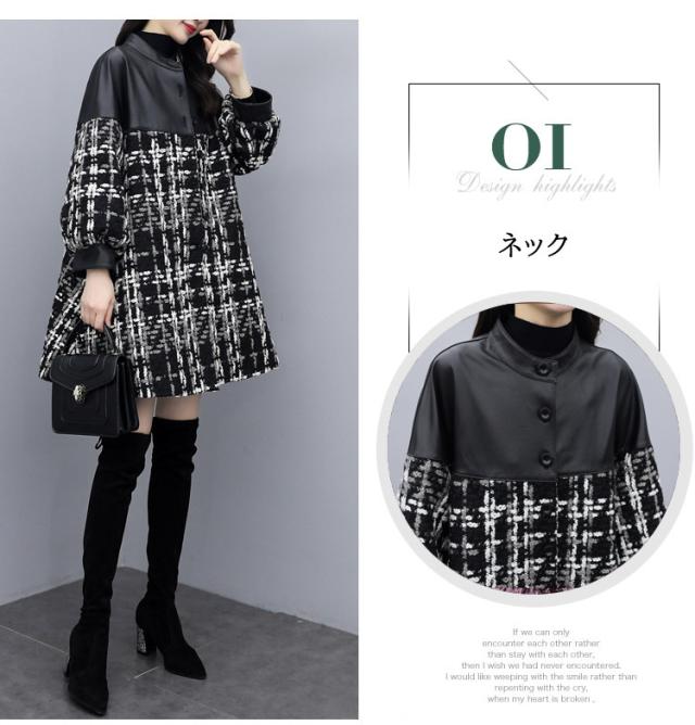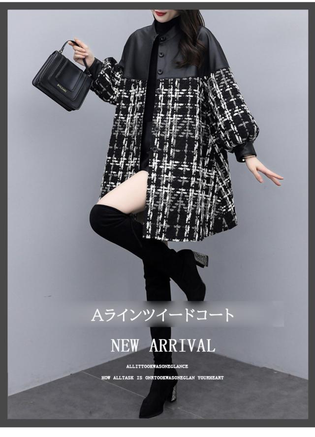 コート ツイードコート レディース チェスターコート PU革切り替えツイードジャケット 秋冬 40代 カジュアル Aラインコート ミディアム丈 オーバー アウター