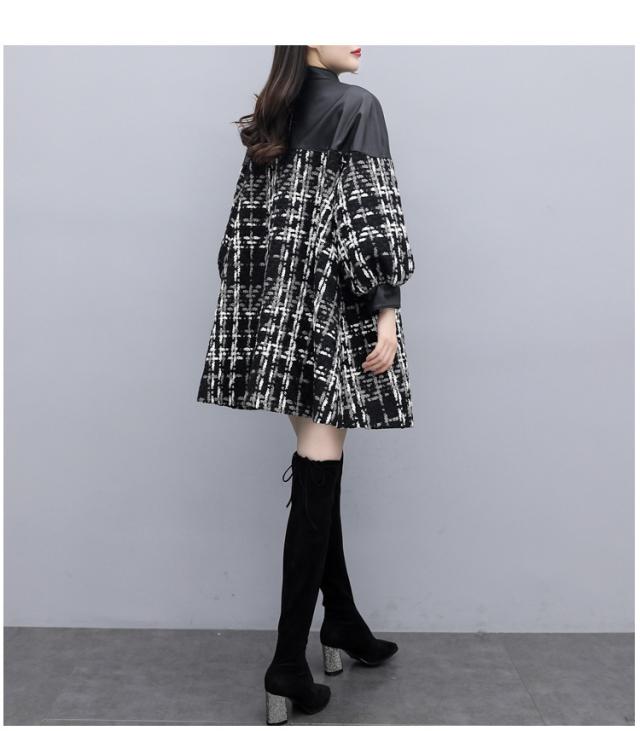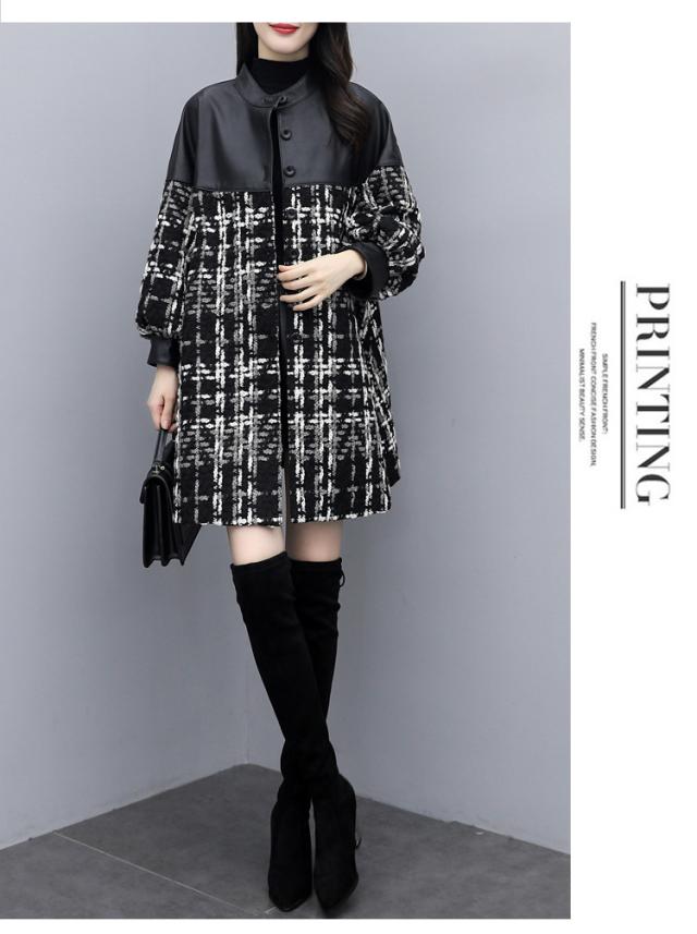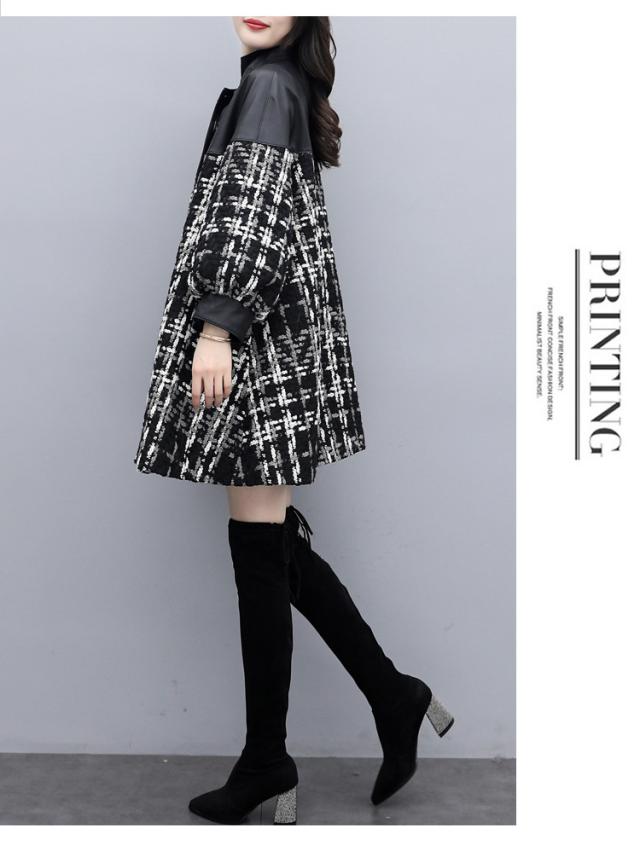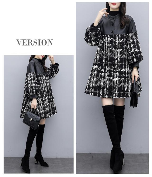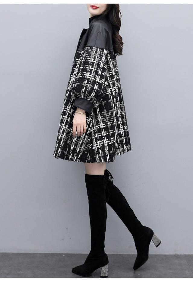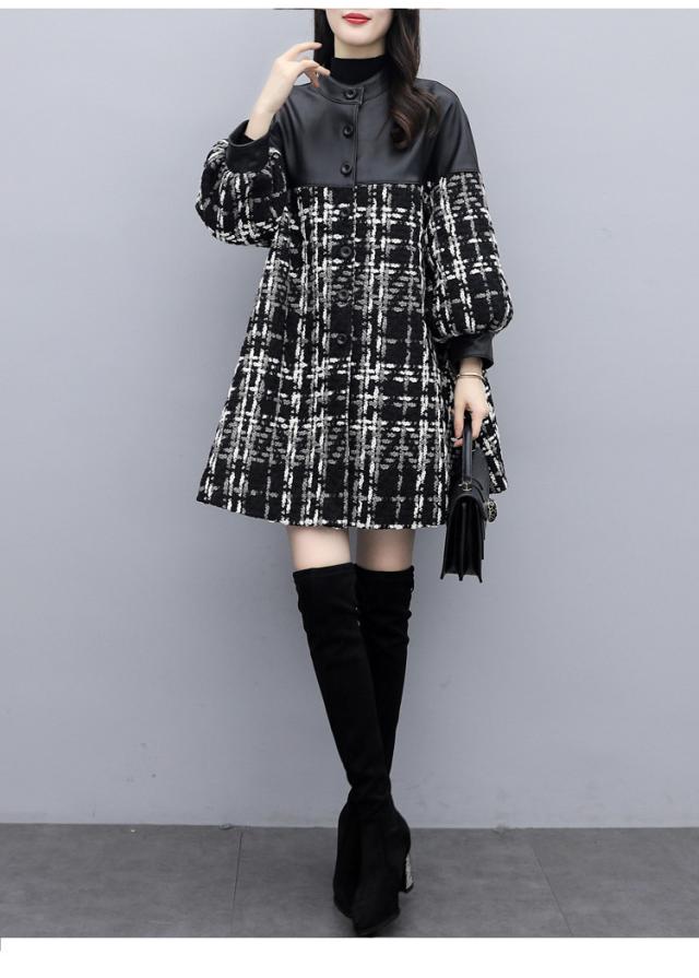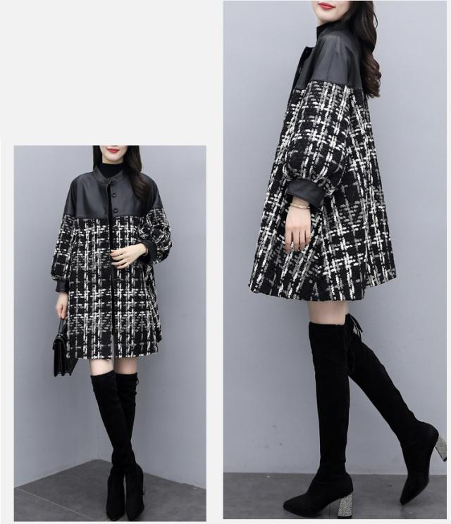 コート ツイードコート レディース チェスターコート PU革切り替えツイードジャケット 秋冬 40代 カジュアル Aラインコート ミディアム丈 オーバー アウター