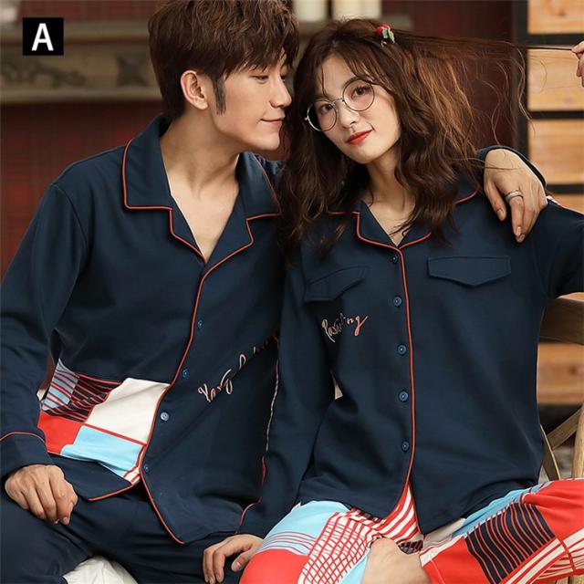 パジャマ カップルペアルック ルームウェア 純綿 秋冬ペアパジャマ長袖 カーディガン パジャマペアルックお揃いレディースメンズ ネグリジェ レディース