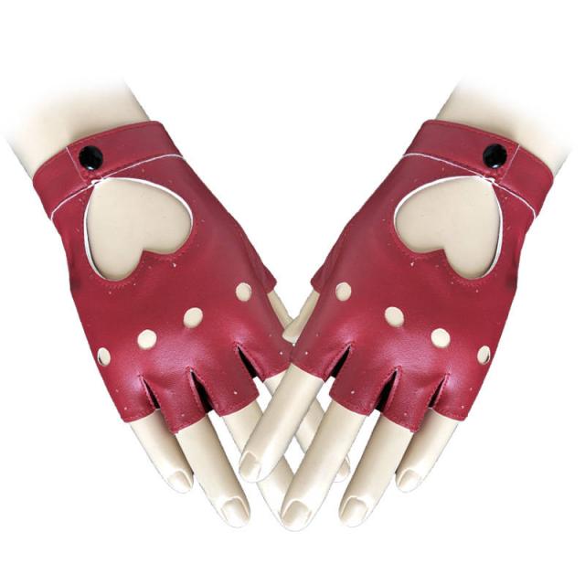 グローブ レザー ハート抜き 指なし手袋 レディース 手袋 指なし 指無し 送料無料 指切り フィンガーレス パーティ— イベント コンテスト ダンス ヒップホップ 舞台 衣装 コスプレ コスチューム フェイクレザー
